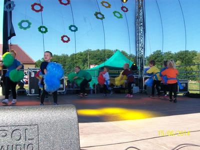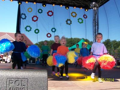 Dnia 15.06.14r. dzieci z przedszkolnej grupy tanecznej miały przyjemność wystąpić z trzema tańcami na dużej scenie z okazji Dni Kołczygłów. Każdy z nas potrafi w pewien sposób powiedzieć, czym jest taniec. Jednak bywa tak, że trudno nam jest określić dokładnie, czym tak naprawdę jest taniec i zbudować definicję tego słowa. Każdy z nas kiedyś na pewno sam tańczył, więc doskonale zdaje sobie sprawę z tego, czym on dla nas jest. Może być dla niektórych ludzi po prostu pracą, dla innych formą terapii, zabawy, czy też metodą na spalanie zbędnych kalorii. Dla nas taniec jest przede wszystkim dobrą zabawą. Tak też było tym razem. Dzieci zatańczyły do trzech piosenek: ,,Grasz w kolory” (tu nowy układ taneczny), ,,Przedszkolna samba” oraz ulubiona interpretacja ruchowa piosenki ,,Dżungla”. Tym występem mówimy ,,Do zobaczenia po wakacjach, czas na zasłużony, wakacyjny odpoczynek”. Tak, tak odpocząć też trzeba, bo tańca trzeba się najpierw nauczyć, a to oprócz dobrej zabawy wymaga też wysiłku. Zdjęcia z próby przed występem i z samego występu z okazji tegorocznych Dni Kołczygłów są najlepszym na to dowodem. Dziękujemy rodzicom za wszelką pomoc i współpracę. Do zobaczenia po wakacjach!