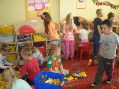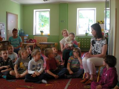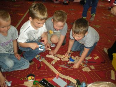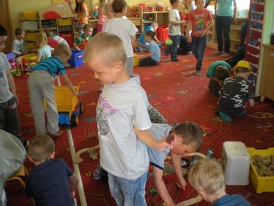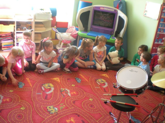 Dzisiaj dzieci z grupy ,,Misiaki" gościły u siebie swoje koleżanki i kolegów z grupy rówieśniczej ze Szkoły Podstawowej w Kołczygłowach. W trakcie spotkania były zabawy integracyjne, kołowe ze śpiewem - do których przygrywał na perkusji Maciek, w kącikach zabaw w sali oraz na placu przedszkolnym. Całe spotkanie przebiegało w miłej i radosnej atmosferze. Dzieci miały okazję bliżej się poznać i nawiązać znajomość, która być może w szkole zamieni się w przyjaźń. Dziękujemy Gościom za przybycie i za wspólnie spędzony czas.
