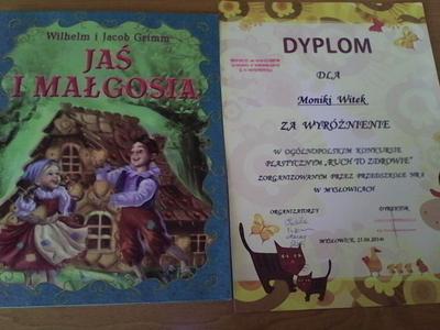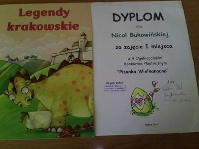 Dziś dzień wspaniałych wiadomości: Nicol Bukowińska WYGRAŁA w V edycji Ogólnopolskiego Konkursu Plastycznego "Pisanka wielkanocna", a Monika Witek otrzymała WYRÓŻNIENIE za pracę wysłaną na Konkurs "Ruch to zdrowie". Obie dziewczynki oprócz dyplomów dostały piękne nagrody książkowe. Brawo!!!