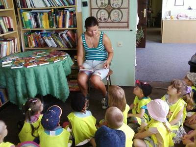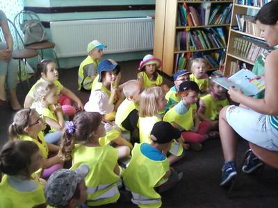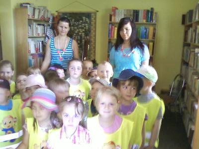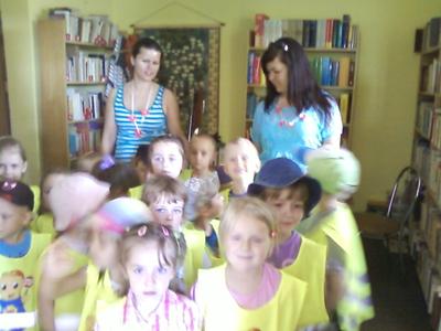 W piątkowe przedpołudnie dzieci z grupy średniej wybrały się do Gminnej Biblioteki Publicznej. Na gości z niecierpliwością czekała P. Bogusia. Podczas spotkania dzieci zapoznały się z funkcjonowaniem biblioteki, czytelni, obejrzały zbiory książek. Wysłachały zabawnych i dobrze znanych rymowanek- wyliczanek przeczytanych przez p. Bogusię. Na zakończenie przedszkolaki wręczyły upominki w podziękowaniu za bardzo ciekawe spotkanie. DZIĘKUJEMY.