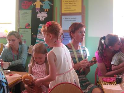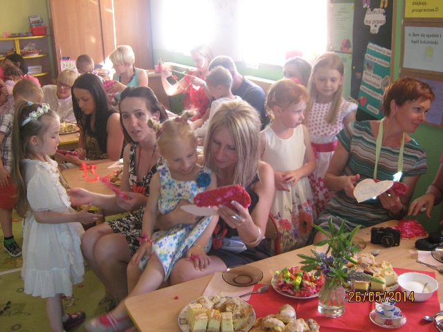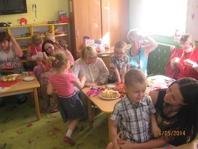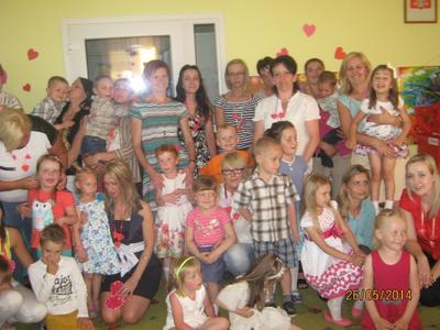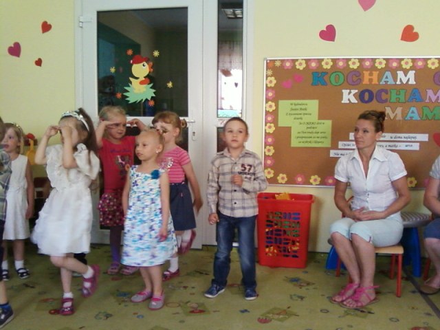 Kocham Cię, MAMO! - to najczęściej wypowiadane słowa przez najmłodszych w ten jedyny dzień w roku. Maj to nie tylko najpiękniejszy miesiąc, ale również najbardziej oczekiwany przez każdą mamę. To właśnie wtedy mama wysłucha wiersze, piosenki dedykowane tylko dla niej. Niekiedy uroni łzę szczęścia i poczuje, jak cudownie być mamą. Średniaki przedstawiły wspaniałą część artystyczną, wręczyły upominki swoim mamom. Nie zabrakło konkursów, wspólnego tańca, a na deser dla mam przygotowano pyszne ciasta upieczone przez: babcię Daniela, babcię Ani i ciocię Miłosza. Dziękujemy i życzymy 100 lat, " BO NAJLEPSZE U MAMY JEST TO, ŻE JĄ MAMY I, ŻE MAMA MA WŁAŚNIE NAS"