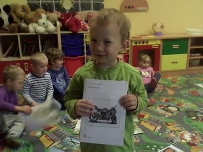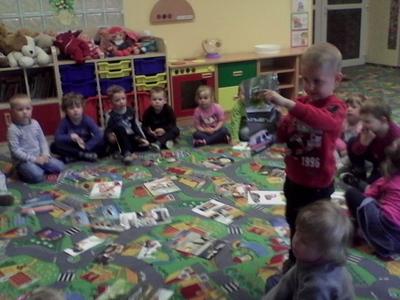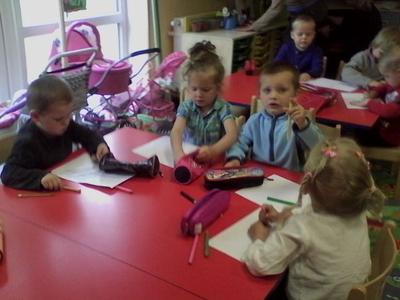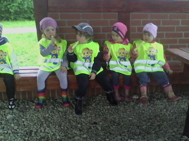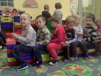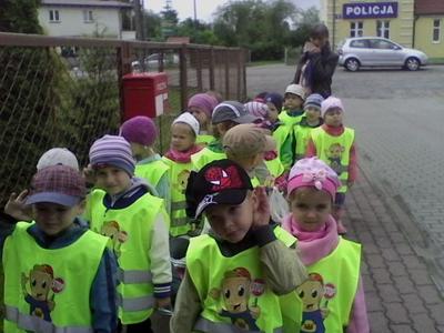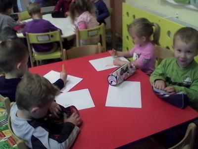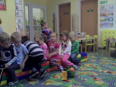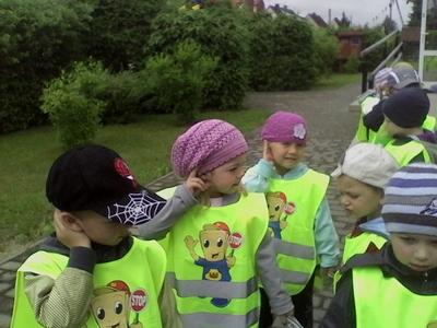 Dziś szukaliśmy hałasu. Podczas naszych poszukiwań spacerowaliśmy w okolicy przedszkola, słuchaliśmy dźwięków głównej ulicy - Słupskiej. Dzieci odkryły, iż wielki hałas czynią ciężarówki, traktory, samochody, motory, odgłosy z budowy, krzyki ludzi, jazgot wielu ptaków oraz dźwięki w sklepie – przyciski kasy, mruczenie lodówek i zamrażarek sklepowych, spadające pudła kartonowe. W naszej podróży dotarliśmy aż za remizę strażacką, gdzie odpoczywając i wymieniając się spostrzeżeniami Krasnale skosztowały samodzielnie kupionych chrupek kukurydzianych. Nasz spacer miał również przypomnieć i utrwalić dzieciom zasady bezpiecznego poruszania się chodnikiem i przechodzenia przez przejście dla pieszych. To były bardzo miło i pożytecznie spędzone zajęcia.