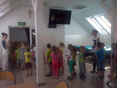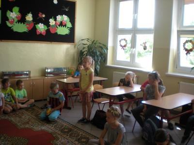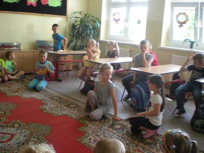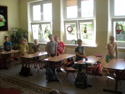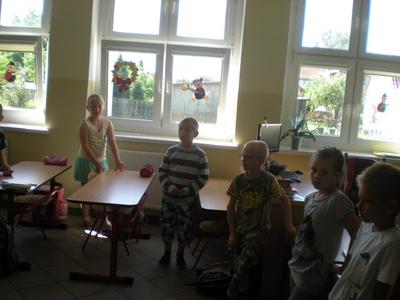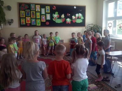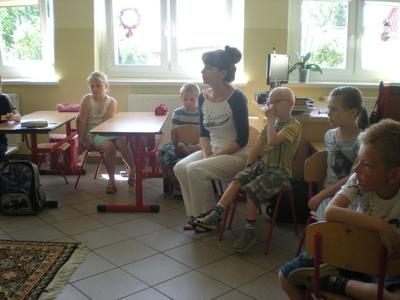 Dnia 10.06.2014 roku dzieci z grupy najstarszej ,,Misiaki'' odbyły wycieczkę do szkoły. Spotkały się z koleżankami i kolegami z klasy pierwszej. Dzieci miały okazję zobaczyć klasę, kolorowe podręczniki do nauki, zeszyty do kaligrafii oraz inne pomoce, które służą do nauki w szkole. Dzieci zaprezentowały się w piosenkach i wspólnych zabawach, które miały na celu lepsze i bliższe poznanie się. Spotkaniu towarzyszyła miła i radosna atmosfera. Do zobaczenia we wrześniu.
