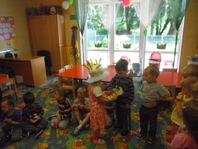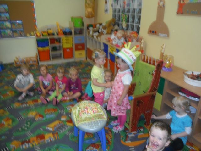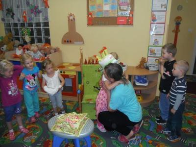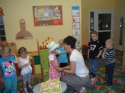 Sto lat dla kolejnego Krasnala! Tym razem urodzinki obchodzi Monika. Wszystkie dzieci z wielką przyjemnością składają życzenia dziewczynce, zwłaszcza życzą jej kolejnych wspaniałych pomysłów do wspólnej zabawy. Wszystkie Panie przyłaczają się do urodzinowych życzeń. Sto lat Monisia!!!