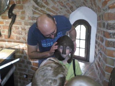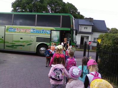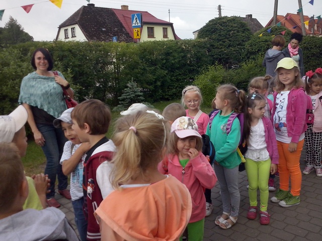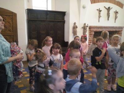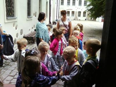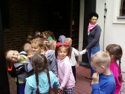Dzisiaj starszaki oraz troje dzieci z grupy średniej wybrały się na niezwykłą wycieczkę edukacyjną do Bytowa. Dzieci z ogromną niecierpliwością czekały na wyjazd. Po śniadaniu, około godziny 9.00 przedszkolaki zajęły miejsca w autokarze.Podróż rozpoczęła się z przedszkolnego parkingu i trwała wystarczająco długo, aby przekąsić małe "co nieco", obejrzeć krótką bajkę. Przed muzeum czekał nas przewodnik, który oprowadził małych turystów po różnorodnych ekspozycjach. Niektóre zbiory wzbudzały strach- szkielet rycerza, inne natomiast zdziwienie- żelazko z kominem. Wycieczka przebiegała w bardzo miłej atmosferze, a zakończyła się krótkim spacerem do WIEŻY DAWNEGO KOŚCIOŁA ŚW. KATARZYNY. Po powrocie na zamkowy plac parkingowy, przedszkolaki zajęły miejsca w autokarze i ruszyliśmy w drogę powrotną. Szkoda, że wycieczka zakończyła sie tak szybko.