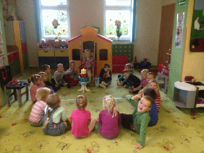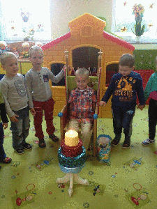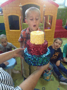 Dziś pierwsze urodzinki w nowym roku szkolnym - cztery lata kończy Bartuś! Sto lat! od wszystkich koleżanek i kolegów :). W tym roku Bartuś jako pierwszy zdmuchnął świeczkę z naszego nowego torciku urodzinowego. Ale poczekajcie na kolejne atrakcje urodzinkowe... :)