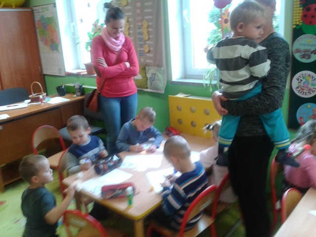 Tak, tak w lesie coraz ciszej, a to za sprawą jesieni, która w tym roku i tak jest dla nas wyjątkowo łaskawa. O odlotach ptaków do ciepłych krajów, o szpaczku, który chciał wynająć budkę na czas swojej nieobecności i o losach innych bohaterów opowiadania Cz. Janczarskiego W lesie coraz ciszej dowiedziały się dzieci z grupy ,,Biedronki” oraz zaproszeni Rodzice na zajęciu otwartym, które odbyło się dnia 7 listopada w grupie średniej. Zajęcia otwarte zawsze wzbudzają wiele pozytywnych emocji wśród Rodziców, ponieważ uczestnicząc w nich mogą oni poznać charakter pracy wychowawczo – dydaktycznej z dziećmi. Zajęcia tego typu realizowane są w ramach planu współpracy przedszkola z Rodzicami, pozwalają na śledzenie postępów własnego dziecka w zakresie osiąganych kompetencji fizycznych, umysłowych, społecznych itp. W czasie zajęć otwartych nauczyciele proszą Rodziców o czynny w nich udział. Dzięki temu Rodzice bawiąc się ze swoimi dziećmi stają się aktywnymi uczestnikami procesu edukacyjnego.