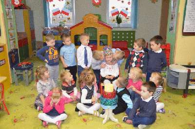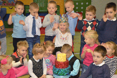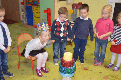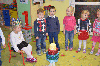 Dziś dla pewnej wesołej Biedroneczki nastało wyjątkowe święto. Marysia skończyła cztery lata i wszystkie przedszkolaki złożyły jej wesołe i piękne życzenia urodzinowe. Marysia pięknie wyglądała w naszej urodzinowej koronie! Najlepsze dla każdego solenizanta są zawsze urodzinowe podrzuty :) Sto lat, Marysiu!
