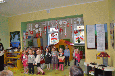W Gminnym Przedszkolu w Kołczygłowach odbył się dziś uroczysty Poranek z okazji Rocznicy Odzyskania przez Polskę Niepodległości. W atmosferę powagi wprowadził gości pięknie zaśpiewany przez dzieci utwór muzyczny autorstwa Elżbiety Buczyńskiej „Niepodległość” . Mimo niewielkiej tremy z powodu licznej widowni Biedroneczki pięknie recytowały wiersze i śpiewały patriotyczne piosenki. Dużym wsparciem dla przedszkolaków było przyłączenie się dorosłych do śpiewania pieśni „Legiony”, „O, mój rozmarynie” i „Płynie Wisła, płynie". Zaś najbardziej podniosłym momentem występu było wspólne odśpiewanie „Pieśni Legionów Polskich we Włoszech" Józefa Wybickiego.
