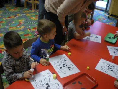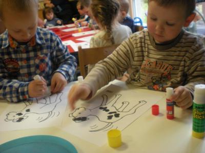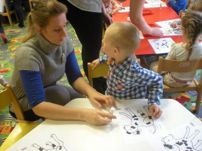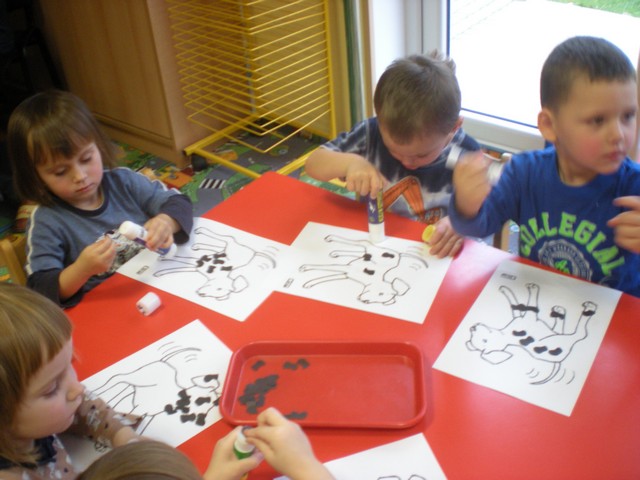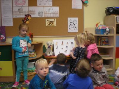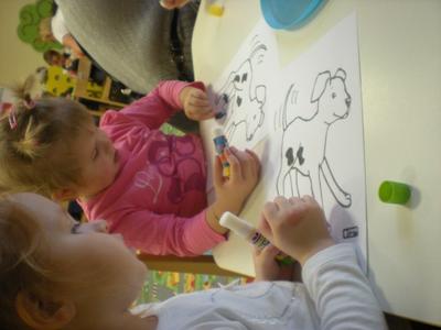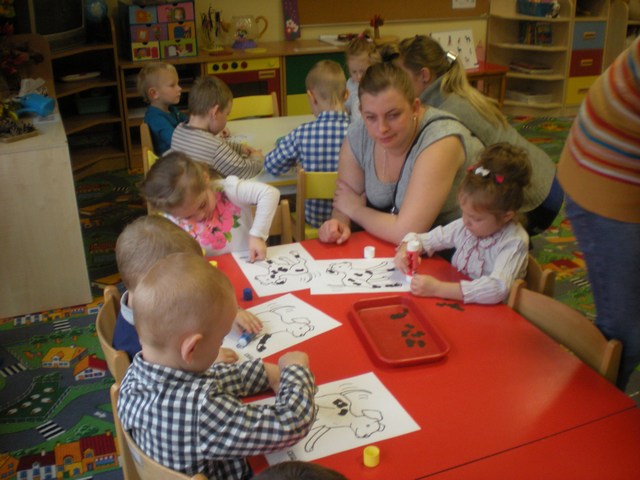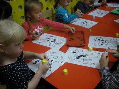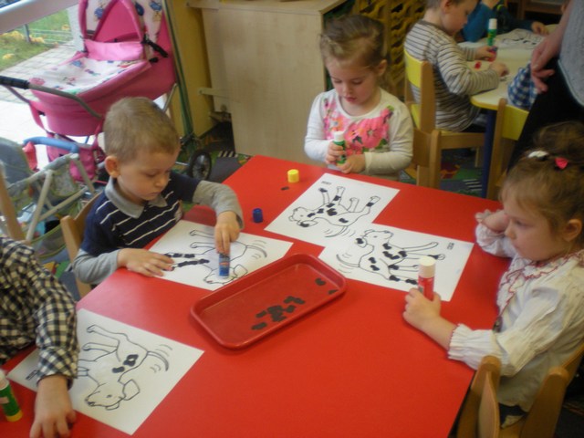Dnia 13 listopada 2014 roku w grupie najmłodszej ,, Krasnale'' odbyły się zajęcia otwarte dla rodziców. Tematem zajęć było poznanie psa rasy,, Dalmatyńczyk''. Dzieci poznały wygląd psa oraz dowiedziały się, co lubi robić taki pies, a czego nie toleruje. Wielką radość sprawiło dzieciom naklejanie czarnych łatek na sylwetach psów. Podczas wykonywania pracy plastycznej Krasnale mogły śpiewać piosenkę o małych pieskach. Na koniec dzieci wspólnie zaśpiewały piosenkę pt.,, Pieski małe dwa''. Całemu spotkaniu towarzyszyła mila i radosna atmosfera. Dziękujemy gościom za poświęcony czas oraz wspólną zabawę.