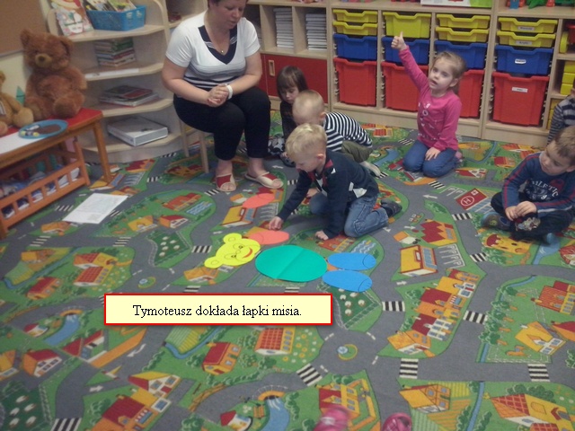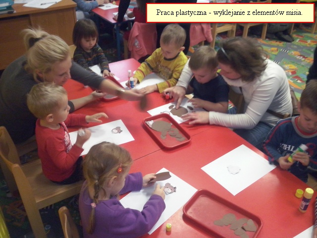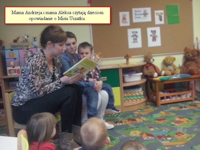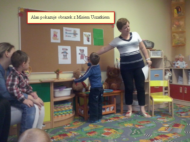 W grupie ,,Krasnale” dnia 25 listopada odbyło się zajęcie otwarte pod hasłem ,,Spotkanie z Misiem Uszatkiem”,w czasie którego dzieci rozwijały swoją uwagę, pamięć, myślenie, mowę, spostrzegawczość i sprawność manualną. Mama Andrzeja oraz mama Aleksa odczytały dzieciom opowiadanie, wyjaśniające skąd wzięła się nazwa Miś Uszatek. Poprzez zabawę i pracę plastyczną dzieci utrwaliły sobie nazwy części ciała oraz narządów zmysłów. Miłą niespodzianką dla dzieci był urodzinowy tort od Misia Uszatka. Całemu spotkaniu towarzyszyła miła atmosfera. Dziękujemy rodzicom za przybycie i zapraszamy na kolejne spotkanie. Do zobaczenia.
