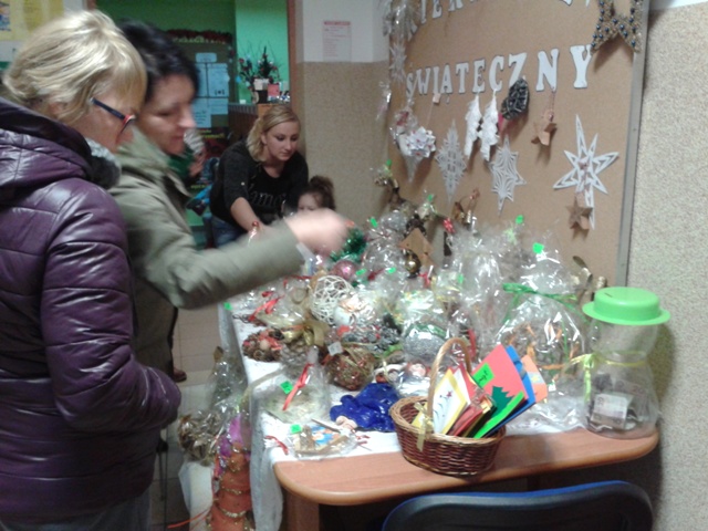 W dniu 5 grudnia odbył się w naszym przedszkolu kiermasz ozdób świątecznych. W tym roku swoimi zdolnościami artystycznymi popisali się nasi Rodzice i ich dzieci. Do końca listopada dostarczyli do przedszkola piękne ozdoby na świąteczny stół i nie tylko. Było w czym wybierać. Na kiermaszu można było zakupić piękne, wykonane ręcznie kartki świąteczne. Były ozdoby z masy solnej, choinki, bombki, piękne bałwanki, Mikołajki, aniołki i inne dekoracje. Oczywiście nie zabrakło też różnego rodzaju stroików. Dziękujemy wszystkim Rodzicom za zaangażowanie i hojność. Kwota zebrana ze sprzedaży ozdób zasili konto Rady Rodziców i będzie przeznaczona na potrzeby dzieci uczęszczających do naszej placówki.