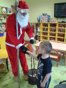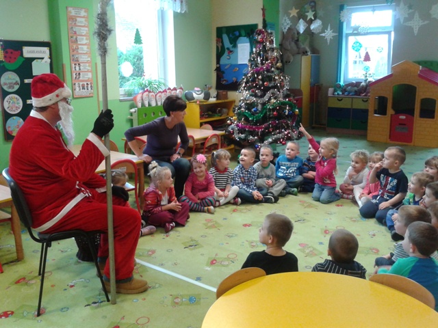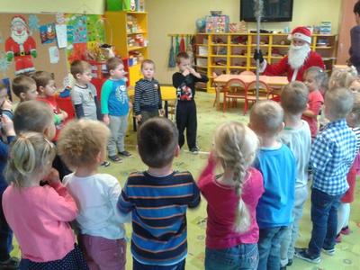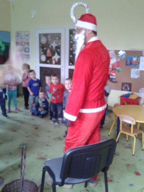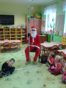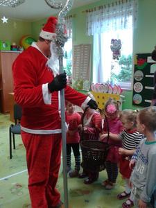 Podobnie jak inne grupy, dnia 5 grudnia zaszczycił ,,Biedronki” swoją obecnością św. Mikołaj. Długo oczekiwany, wywołał uśmiech na twarzach przedszkolaków. Gość specjalny został gorąco zaproszony przez dzieci do zabawy, tańca i śpiewu. Miło spędzony czas uświetniły wspólne zdjęcia oraz upominki. ,Biedronki” z ogromną radością zaprosiły św. Mikołaja na przyszły rok, obiecując, że czekając na niego będą bardzo grzeczne ( kto wie, może spotkamy się z Nim prędzej). Tak czy inaczej, do zobaczenia!