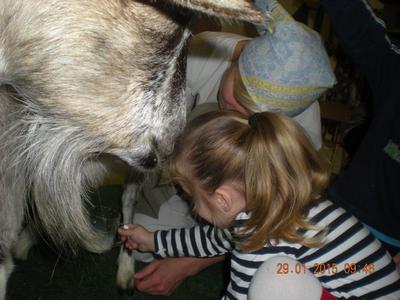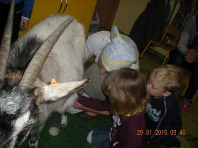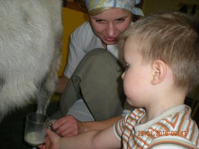 Niezwykłą atrakcją dla wszystkich uczestników było spotkanie z kozą Magdą. Odważne osoby mogły spróbować doić kozę – oj chętnych było dużo. Okazało się, że koza to miłe i przyjazne zwierzę. Całemu spotkaniu towarzyszyła miła i radosna atmosfera. Dziękujemy za piękny i pouczający program.