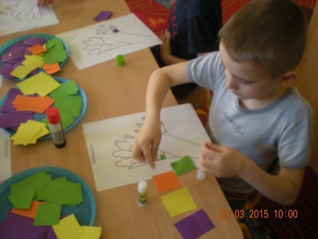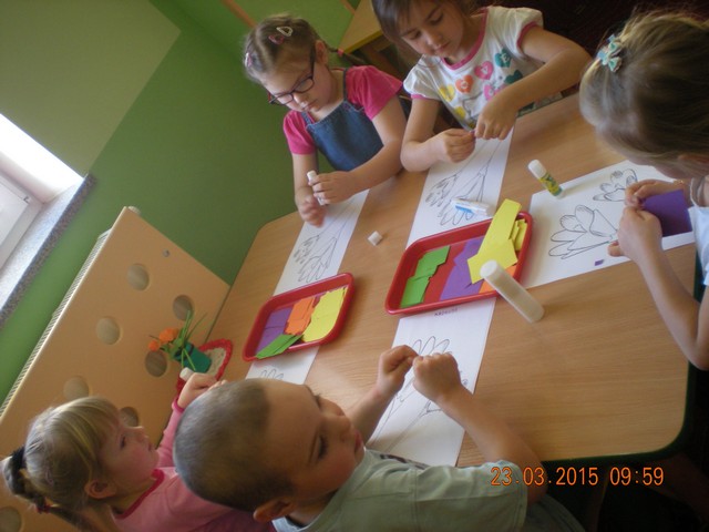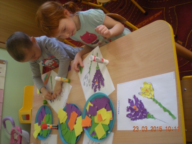 Tak, tak to już nadeszła wiosna. Dnia 23 marca 2015 roku w grupie najstarszej,,Misiaki” odbyło się zajęcie otwarte dla rodziców. Słońce przyprowadziło wiosnę za rękę i zaprosiło, aby usiadła przed domem na ławce. Dzieci z grupy najstarszej doskonale wiedziały jaka pora roku następuje po zimie. Dokładnie omawiały jak wygląda wiosna oraz potrafiły wymienić pierwsze kwiaty wiosenne. Na koniec dzieci wykonały pracę plastyczną pt.,,Krokus”. Dziękujemy mamie Hani za udział i wspólna zabawę.