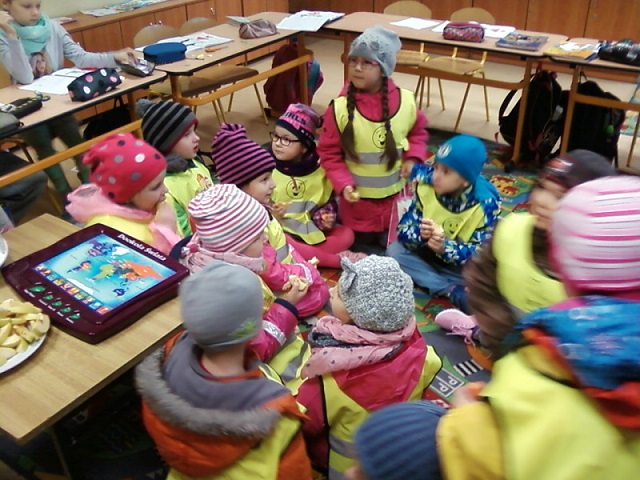 W piątek starszaki MISIAKI wybrały się na wycieczkę do Zespołu Szkół w Kołczygłowach. Dzieci odwiedziły klasę trzecią, w której rozpoczną szkolną przygodę po wakacjach. Wychowawczyni klasy III -p. Małgosia opowiedziała o zwyczajach panujących w szkole, dzieci obejrzały Karty Pracy dla kl. I. Starsi koledzy zaprosili również wszystkich chętnych do wspólnej zabawy. Był też jabłuszkowo- marchewkowy poczęstunek. Przedszkolaki natomiast wręczyły wielkanocną niespodziankę. Dziękujemy.