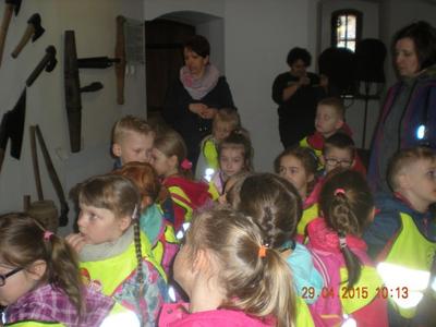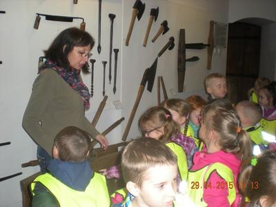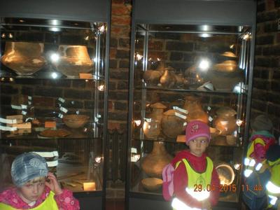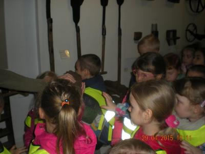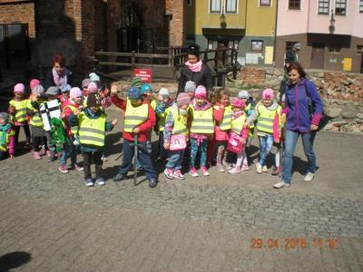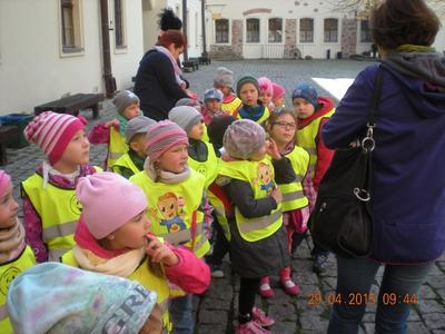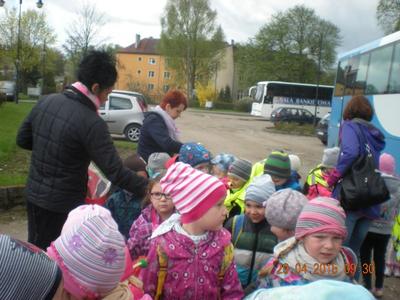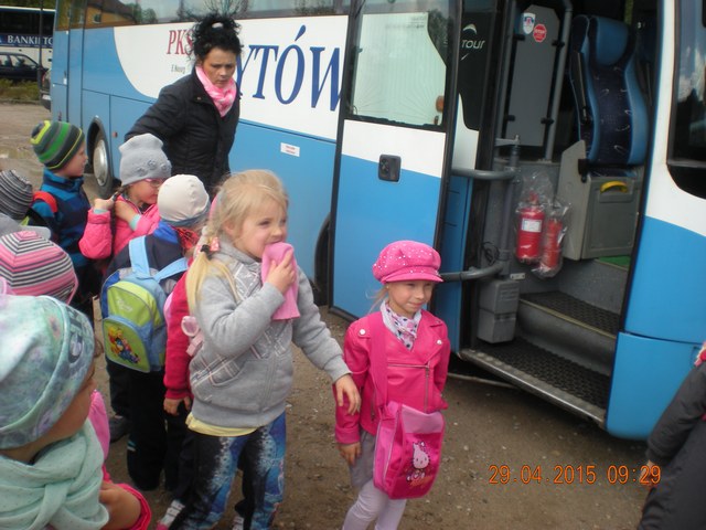 Dzisiaj, tj. 29 kwietnia 2015r. starszaki i jedno dziecko z grupy średniej wybrały się na wycieczkę do Bytowa. Celem wycieczki było przede wszystkim obcowanie ze sztuką. Dzieci poznały słowa związane ze sztuką: ekspozycja etnograficzna, obraz, reprodukcja, zabytek i wiele innych. W poszczególnych salach muzeum obejrzały eksponaty, poznały wytwory twórców ludowych, wzbogaciły wiedzę o informacje dotyczące życia ówczesnego społeczeństwa; jak żyli rolnicy, hodowcy, czym zajmowali się poza pracą w gospodarstwie, jak wyglądały ich domy. Przedszkolaki obejrzały również eksponaty związane z tradycją i regionem kaszubskim. Na koniec mali turyści przeszli zamkowym szlakiem na wieżę widokową Zamku. Emocje towarzyszyły dzieciom zarówno podczas podróży autokarem( dla niektórych pierwsza podróż), jak i podczas zwiedzania muzeum. Po zakończeniu zwiedzania dzieci mogły zakupić drobną pamiatkę w zamkowym sklepiku. Dziękujęmy opiekunom i mamie Hani, którzy dbali o bezpieczeństwo starszaków MISIAKÓW