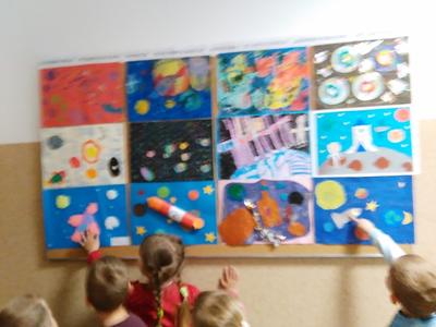 21 maja 2015 roku przypadało wyjątkowe święto - "Światowy Dzień Kosmosu". Nasze przedszkolaki przez cały tydzień zdobywały wiedzę na temat Wszechświata i osągnięć ludzkości w kosmosie. Dzieci mogły również podziwiać galerię prac Konkursu zorganizowanego przez nasze przedszkole zatytułowaną "Kosmos widziany oczami dziecka". Przedszkolaki zdecydowały, że należy wesprzeć galerię własnymi pomysłami i pracami plastycznymi - sami również wykonali bardzo pomysłowe dzieła.