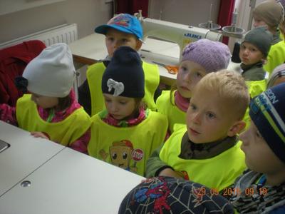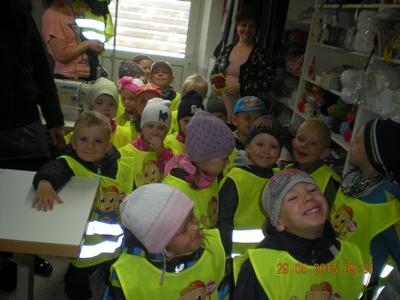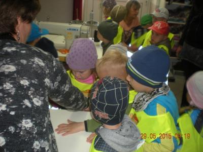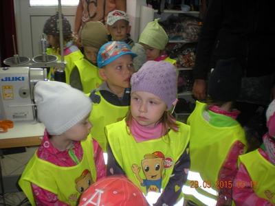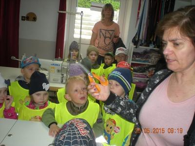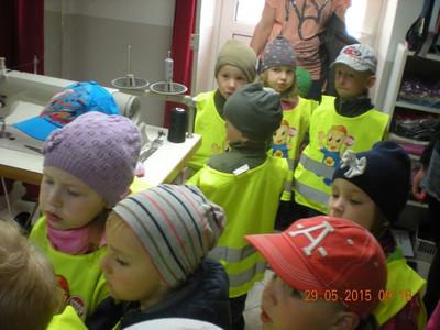 Dnia 29 maja 2015 roku dzieci z grupy ,,Krasnale'' wybrały się na wycieczkę do Zakładu Krawieckiego w Kołczygłowach. Pani Danuta już czekała na Krasnali w swojej pracowni. Podczas spotkania dzieci dowiedziały się na czym polega praca krawcowej, zapoznały się z wyposażeniem i funkcjonowaniem pracowni, oraz mogły pooglądać niezbędny asortyment potrzebny do pracy. Wielkim zainteresowaniem cieszyły się kolorowe łatki oraz błyszczące koraliki do ozdabiania ubrań. Dziękujemy Pani Danucie za przybliżenie wiadomości na temat swojej pracy oraz za miłą i serdeczną atmosferę podczas spotkania.