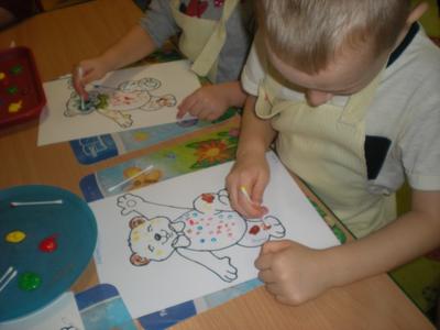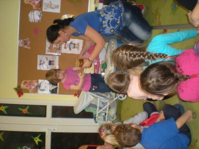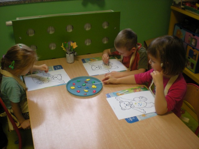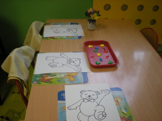 "Listopadzie, listopadzie pospadały liście z drzew...". W poniedziałkowy poranek (23.11.2015) w grupie "Biedronki", gdy za oknem można było zobaczyć białą pierzynę z płatków śniegowych, odbyło się zajęcie otwarte. Dzieci z wielkim zainteresowaniem wysłuchały fragmentu opowiadania ("W sklepie z zabawkami" Cz. Janczarskiego). Doskonale odpowiadały na pytania dotyczące wysłuchanego utworu literackiego. Potrafiły porównać przedmiot, który jest cięższy co wspaniale widać na załączonych zdjęciach. Na końcu dzieci zaprezentowały swoje umiejętności plastyczne. Ozdobiły sylwety misia za pomocą farb i patyczków tworząc ich kolorowe wizerunki. Każdy miś był wyjątkowy i niepowtarzalny. Dziękujemy wszystkim zaproszonym gościom za przybycie i udział w zajęciu otwartym.