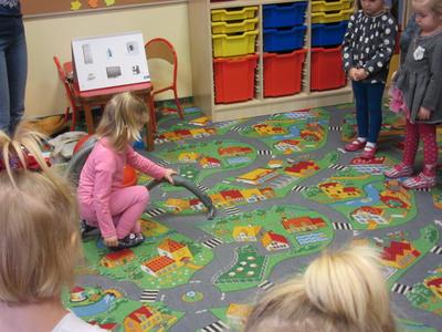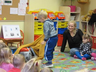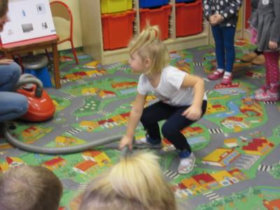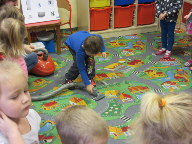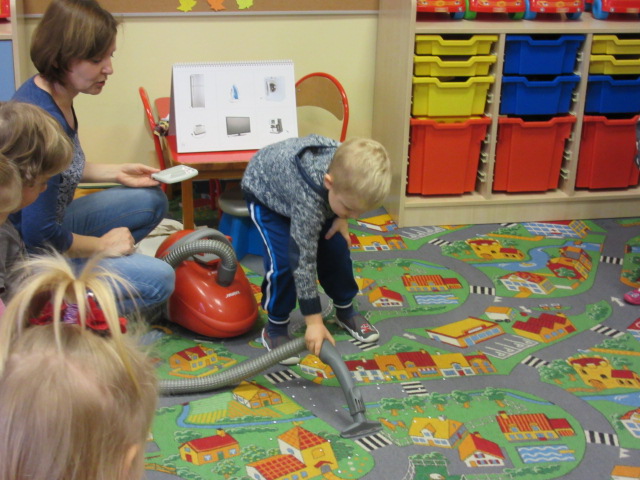 Listopad to miesiąc, w którym chętni Rodzice mogą uczestniczyć w zajęciach otwartych w naszym przedszkolu. Dzisiaj,tj. 24 listopada Rodzice KRASNALI wzięli udział w zajęciu na temat URZĄDZENIA ELEKTRYCZNE W MOIM DOMU. W czasie spotkania dzieci poznały zasady działania odkurzacza, a przede wszystkim jego znaczenie, mogły sprawdzić swoje umiejętności związane z zachowaniem porządku. Wspólna recytacja wiersza pt. TO JEST ODKURZACZ była świetną zabawą językową. Pod koniec zajęcia dzieci projektowały dywan, natomiast mamy malowały urządzenie do odkurzania dywanów- odkurzacz. Dziękujemy za liczny udział w zajęciu oraz wspólną zabawę.