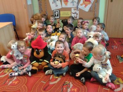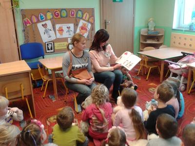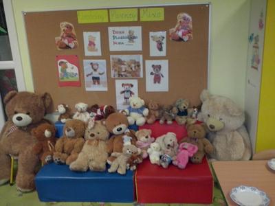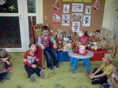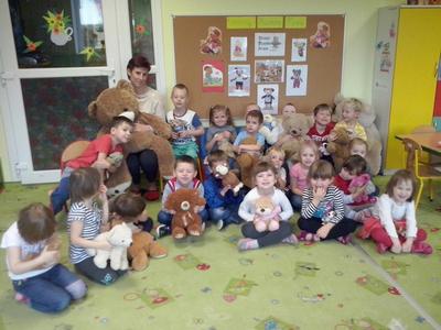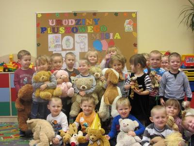 Nazwa zobowiązuje – zwłaszcza, gdy jest się starszakiem – Misiakiem. Najstarsze dzieci ugościły panią Anię, mamusię Marysi i panią Jolę, mamusię Szymka, które przeczytały im fragment „Przygód Misia Uszatka” i wzięły udział w zabawach z przyniesionymi z domu misiami. Każdy miał okazję wykonać prawdziwy portret swojego niedźwiadka, a ukończone prace zostały wywieszone na przedszkolnej galerii. Sto lat Pluszaki – Misiaki!