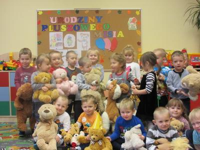 Miękki, puchaty i taki z łatką. 25 listopada swoje święto obchodzi najmilsza zabawka, najlepszy przyjaciel dzieci i niezastąpiona przytulanka przy zasypianiu – Pluszowy Miś. W naszym przedszkolu święto to jest obchodzone wyjątkowo hucznie i uroczyście. W każdej sali zabrzmiały dziś piosenki i życzenia dla misiów, przedszkolaki przyniosły z domu własne przytulanki, nie zabrakło smacznego „małego co – nieco”.