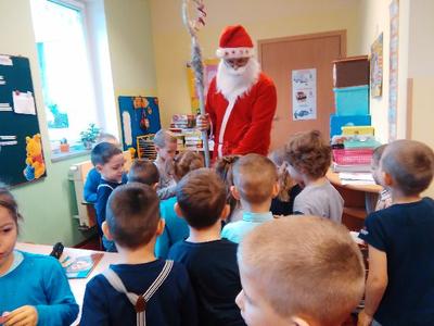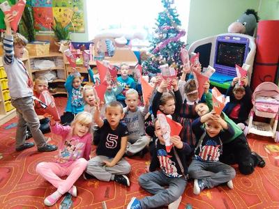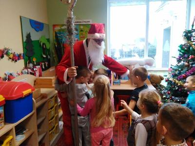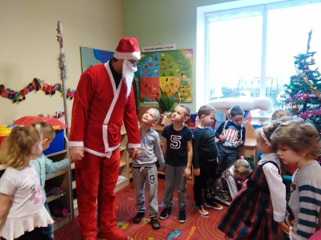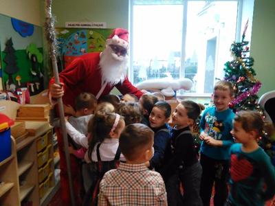 . Mikołaj przy pomocy Mai wyczarował prezenty dla starszaków, a po wspólnych zabawach w kole i pamiątkowym zdjęciu przy choince musiał się pożegnać, ponieważ czekały na niego jeszcze dzieci w innych grupach i w innych przedszkolach. Dzieci długo wspominały ten dzień, dzieliły się wrażeniami, ponownie oglądały prezenty, zerkały przez okno z nadzieją, że jeszcze raz zobaczą naszego gościa i pomachają mu na pożegnanie.