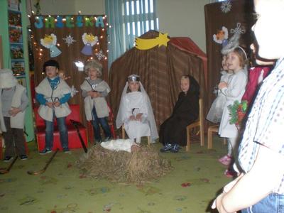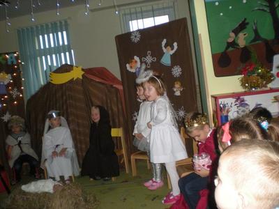 Boże Narodzenie to chyba najbardziej wyczekiwane święta w roku. Już wiele dni wcześniej z radością myślimy o uroczystej kolacji w gronie najbliższych, o strojeniu choinki i wielu innych rzeczach związanych z tymi świętami. Jest to czas niezwykły, bowiem jest w nim coś magicznego. Tym co sprawia, że Boże Narodzenie jest tak pełne uroku, są między innymi zwyczaje i tradycje z nimi związane. Jednym z takich zwyczajów są Jasełka. Dzieci z grupy ,,Biedronki” i ,,Misiaki” pod okiem swoich pań przygotowały takie jasełkowe spotkanie. Była choinka, migoczące lampki, wystrój świąteczny, jasełkowy występ dzieci, wspólne śpiewanie kolęd oraz dzielenie się opłatkiem. Pani Dyrektor naszego Przedszkola złożyła wszystkim dzieciom, rodzicom oraz pracownikom świąteczne życzenia. Całemu spotkaniu towarzyszyła wzniosła atmosfera pełna radości. Życzymy, by ta radość trwała przez cały okres świąteczny i jeszcze dłużej. Wesołych świąt i wszystkiego dobrego w nadchodzącym Nowym Roku.