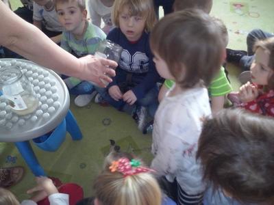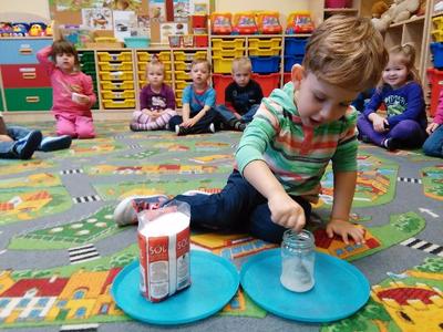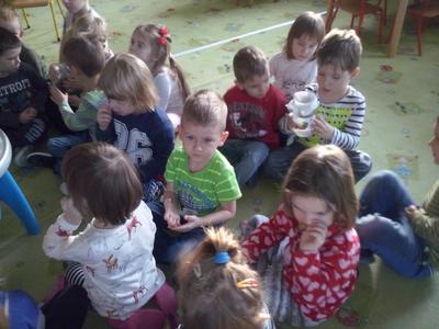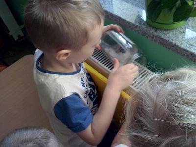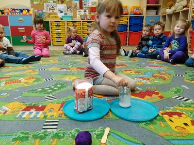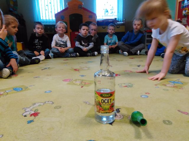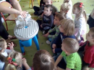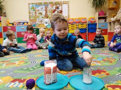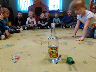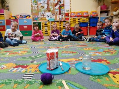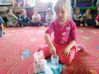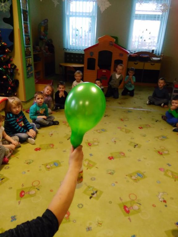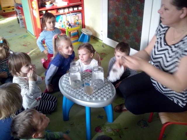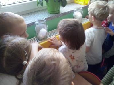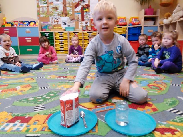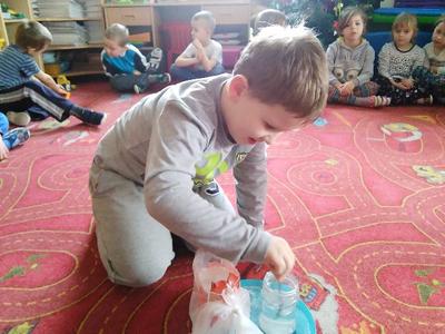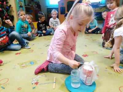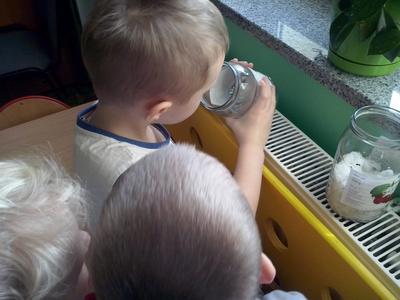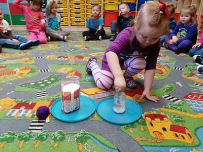 W ostatnich dniach dzieci miały okazję poznać i wykonać kilka prostych doświadczeń związanych z zimą. Średniaki obserwowały i poznawały różne tropy na śniegu i badały, czy bialutki śnieg jest czysty. Maluszki wykonały roztwór soli, na którym - mamy nadzieję - niedługo pojawią się kryształki soli przypominające kunsztownie zbudowane płatki śniegu. Starszaki natomiast dowiedziały się, że ocet w połączeniu z sodą może nadmuchać balon.