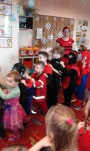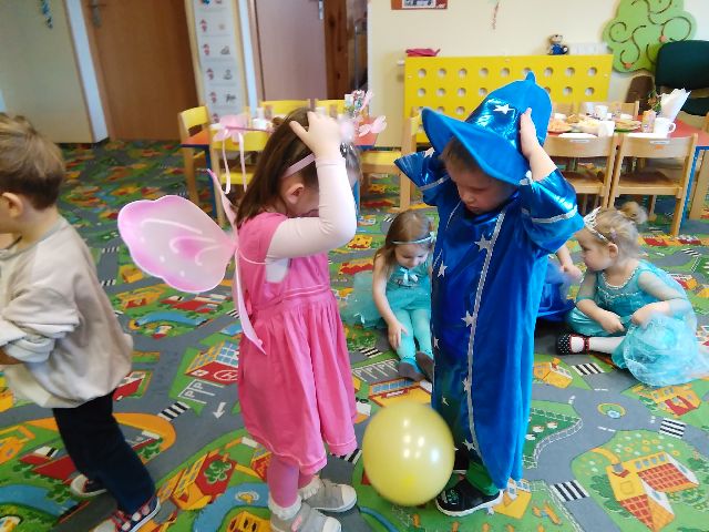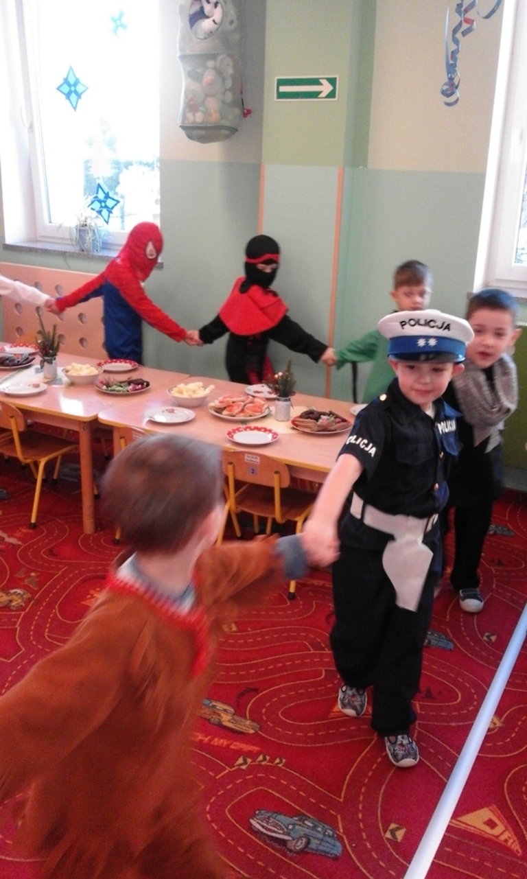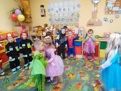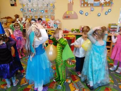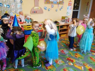 Bal karnawałowy dla przedszkolaków to dzień niezwykły, jest atrakcją bardzo lubianą przez dzieci. Tak też było u nas. W dniu 29.01.2016r. w naszym przedszkolu odbył się wspaniały bal. Tego dnia już od rana w przedszkolu pojawiały się kolorowe postacie. Dzieci przebrane były za bohaterów znanych bajek, w salach przedszkolnych można było spotkać wróżki, królewny, delikatne motylki, rycerzy, piratów, policjantów i innych przebierańców. Nie sposób zliczyć i wymienić tych wszystkich postaci. Wystrój sal wprowadzał dzieci w radosny nastrój oraz zachęcał do wesołej zabawy. W salach wszystkich grup podczas pląsów robiło się kolorowo, wszyscy bawili się wesoło, uśmiech nie znikał z twarzy dzieci mimo chwilowego zmęczenia. Po krótkim wypoczynku podczas poczęstunku, muzyka znowu porywała wszystkich do tańca. Bal umożliwił dzieciom i wychowawczyniom spędzić czas w miłej atmosferze. Wspólna zabawa przyniosła wiele radości naszym wychowankom, a to było głównym celem tego balu. Dziękujemy dzieciom i rodzicom za zaangażowanie w przygotowanie pięknych balowych strojów.