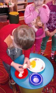 Jajko w roli głównej to znak, że Wielkanoc zbliża się wielkimi krokami. Dla grupy starszaków to doskonała okazja do zabaw badawczych. Nasza aktywność rozpoczęła się od "burzy mózgów" i odpowiedzi na pytania: Do czego potrzebne są jajka? Co stanowi zawartość jajka? Po czym można rozpoznać, że jedno jajko jest surowe , a drugie ugotowane? Na pewno przyda nam się taka wiedza. A tak przy okazji starszaki ,,Misiaki” - życzą Wszystkim radosnych, pogodnych Świąt Wielkanocnych.