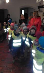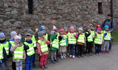 28 kwietnia 2016r. (czwartek) starszaki uczestniczyły w wycieczce edukacyjnej do MUZEUM ZACHODNIO - KASZUBSKIEGO W BYTOWIE. Celem wycieczki było przede wszystkim obcowanie ze sztuką. Dzieci poznały tu słowa z nią związane m.in.: ekspozycja etnograficzna, obraz, reprodukcja, zabytek i wiele innych. W poszczególnych salach muzeum obejrzały eksponaty, poznały wytwory twórców ludowych, wzbogaciły wiedzę o informacje dotyczące życia ówczesnych ludzi (jak żyli rolnicy, hodowcy, czym zajmowali się poza pracą w gospodarstwie, jak wyglądały ich domy). Końcowym etapem wycieczki było przejście zamkowym szlakiem na wieżę widokową dawnego kościoła św. Katarzyny. Emocje towarzyszyły dzieciom zarówno podczas podróży autokarem ( dla niektórych pierwsza podróż), jak i podczas zwiedzania muzeum. Dziękujemy wszystkim opiekunom, którzy dbali o bezpieczeństwo ,, Misiaków” podczas wycieczki.