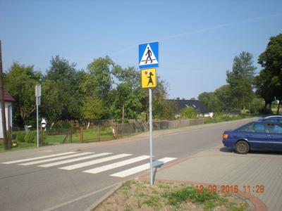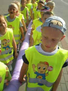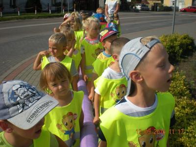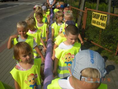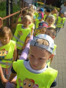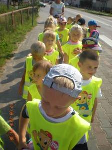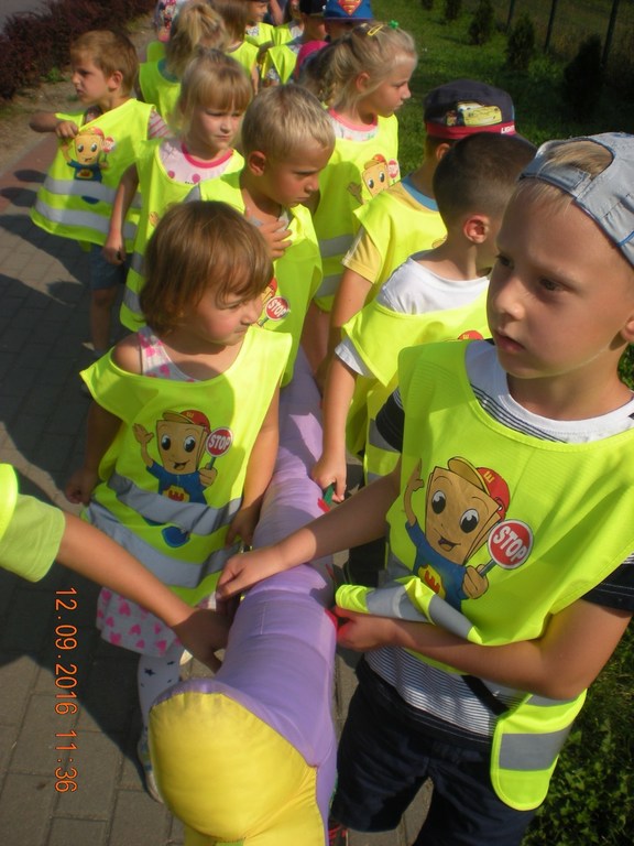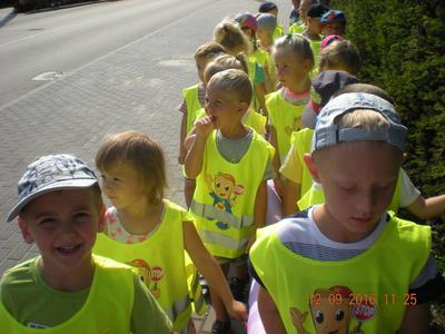 Dnia 12 września 2016 grupa „Biedronki” wybrała się na przejście dla pieszych. Wcześniej dzieci podczas zajęć w sali przedszkolnej wypowiadały się na temat bezpiecznego przechodzenia przez ulicę. Każdy przedszkolak wiedział, że przechodzić przez jezdnię można tylko w wyznaczonych miejscach, że należy rozejrzeć się czy nie nadjeżdża samochód oraz zachować szczególną ostrożność na drodze i słuchać rad osób dorosłych. Po teoretycznej lekcji nastał czas, aby wykorzystać teorię w praktyce. Dzieci ubrane w odblaskowe kamizelki wyruszyły na spacer na przejście dla pieszych. „Biedronki” podczas tego spaceru mogły zaobserwować ruch uliczny, zobaczyć znaki umieszczone przy pasach (potrafiły te znaki nazwać), a także przejść po „zebrze”. Po skończonej lekcji praktycznej dzieci bezpiecznie wróciły do przedszkola.
