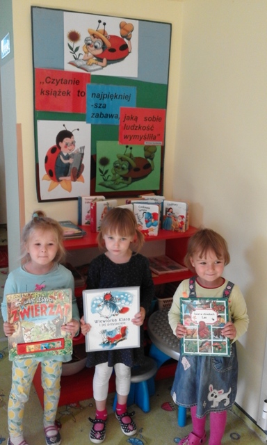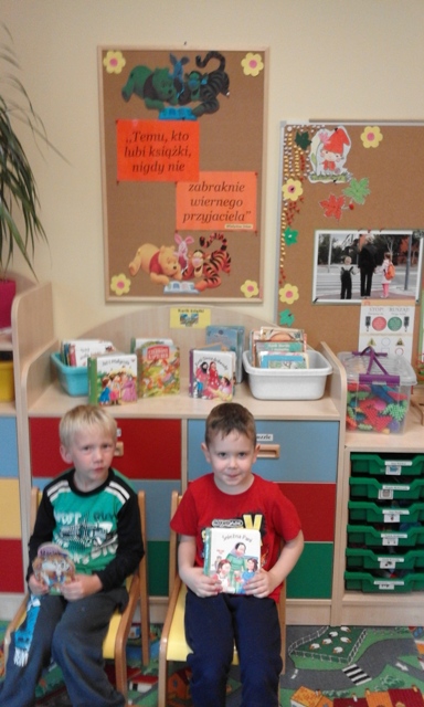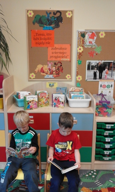 Przekonanie, że książka "uczy, bawi i wychowuje" wywiera wpływ na kształtowanie czynnej postawy czytelniczej u dzieci. Nauczycielki w przedszkolu systematycznie w każdej grupie wiekowej organizują sytuacje edukacyjne rozwijające kompetencje czytelnicze wśród przedszkolaków. Jednym ze sposobów kształtowania takiej postawy u dzieci jest urządzenie w sali przedszkolnej kącika książki. Tak zorganizowane w salach grup: ,,Krasnale”, ,,Biedronki” i ,,Misiaki” kąciki książki mają pomóc rozwinąć zainteresowania książką oraz przyzwyczaić dzieci do właściwego z nich korzystania. Zachęcamy też rodziców do codziennego, kilkuminutowego czytania dzieciom w domu. Wystarczy 20 minut dziennie, by wspierać wszechstronny rozwój swoich pociech. Miłej lektury.