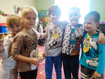 Tego dnia w grupie Misiaków świętowały wszystkie dzieci, zarówno chłopcy jak i dziewczynki. Dzieci wzięły udział w wiele zabawach zręcznościowo - sportowych i konkursach tak, aby każdy mógł się wykazać inną sprawnością. Na koniec uroczystości dziewczynki wręczyły kolegom piękne upominki - krawaty i medale. Wszystkiego najlepszego.
