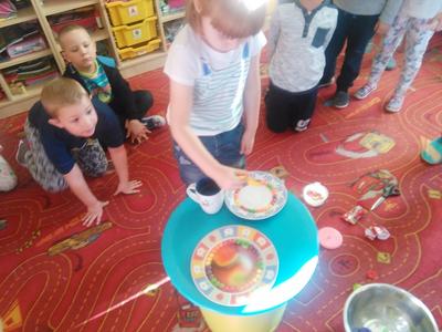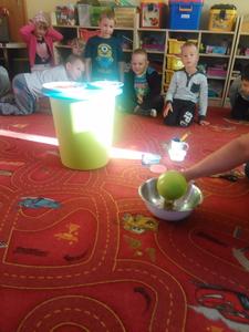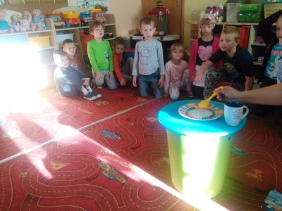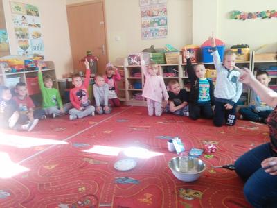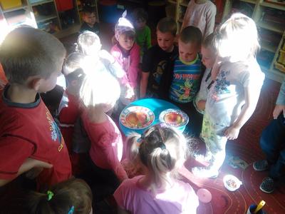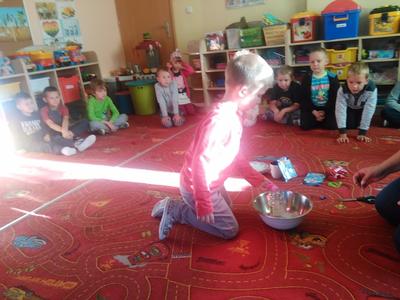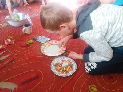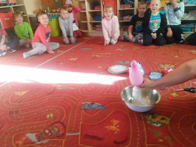 Czy kolorowe słodycze są zdrowe, czy można nadmuchać balon bez dmuchania w niego? Na te pytania starszaki znają już odpowiedzi. Dziś Misiaki łącząc ocet z sodą oczyszczoną wytworzyły gaz, który nadmuchał balony, potem zaś odkryły barwniki spożywcze kryjące się w pysznych cukierkach owocowych.