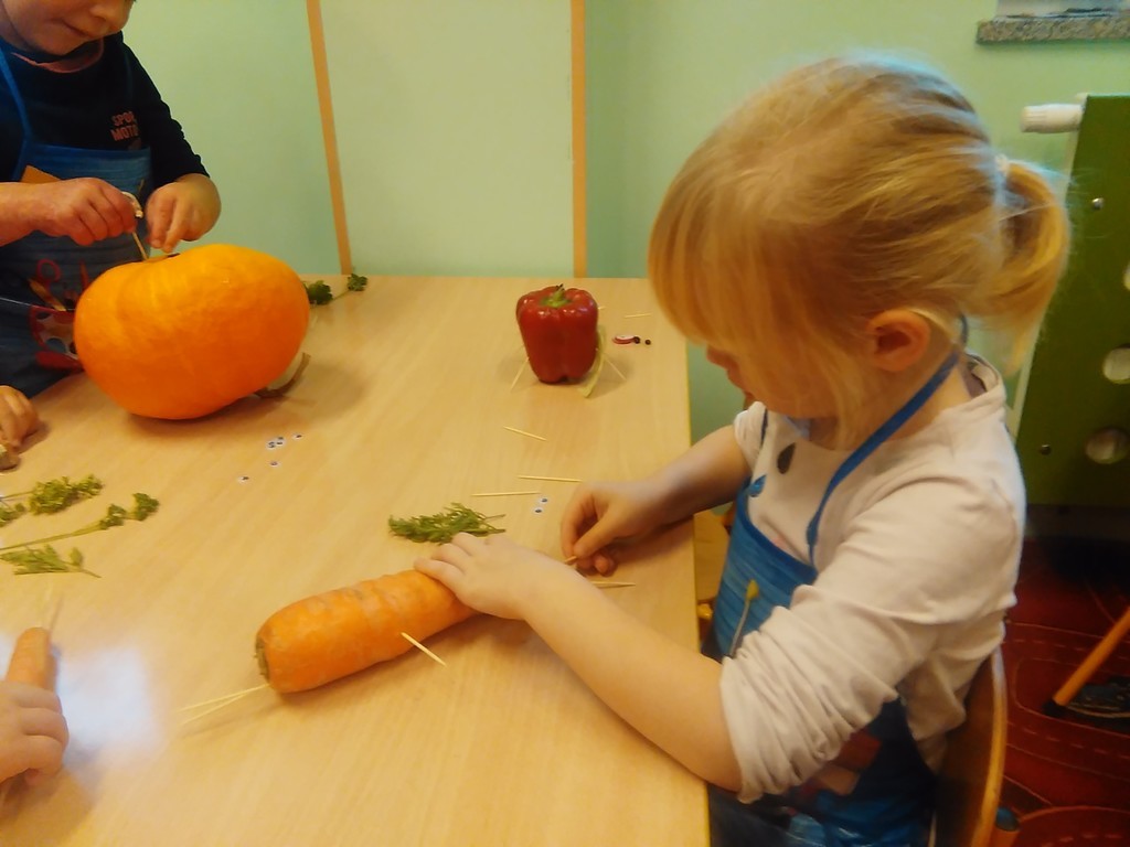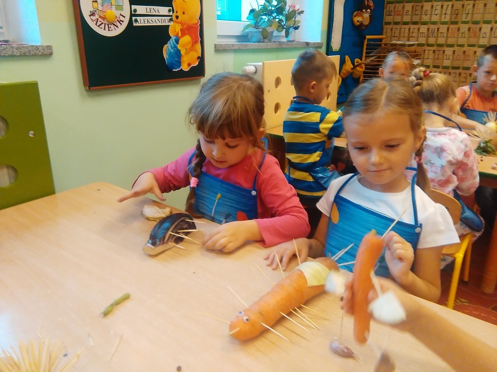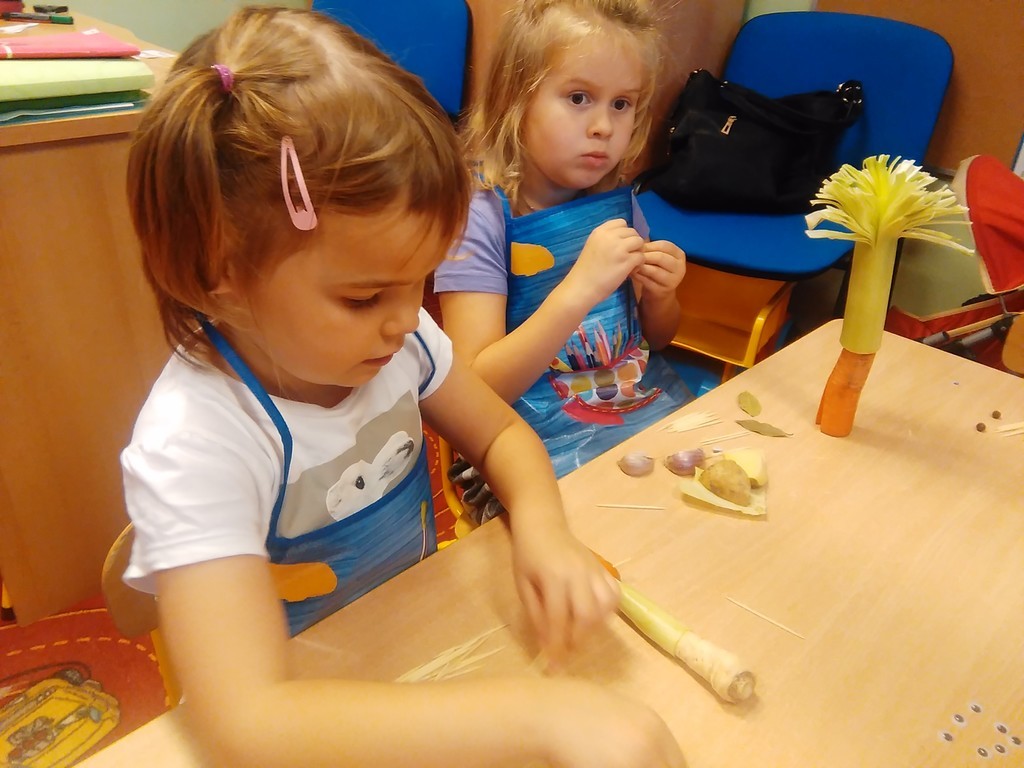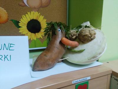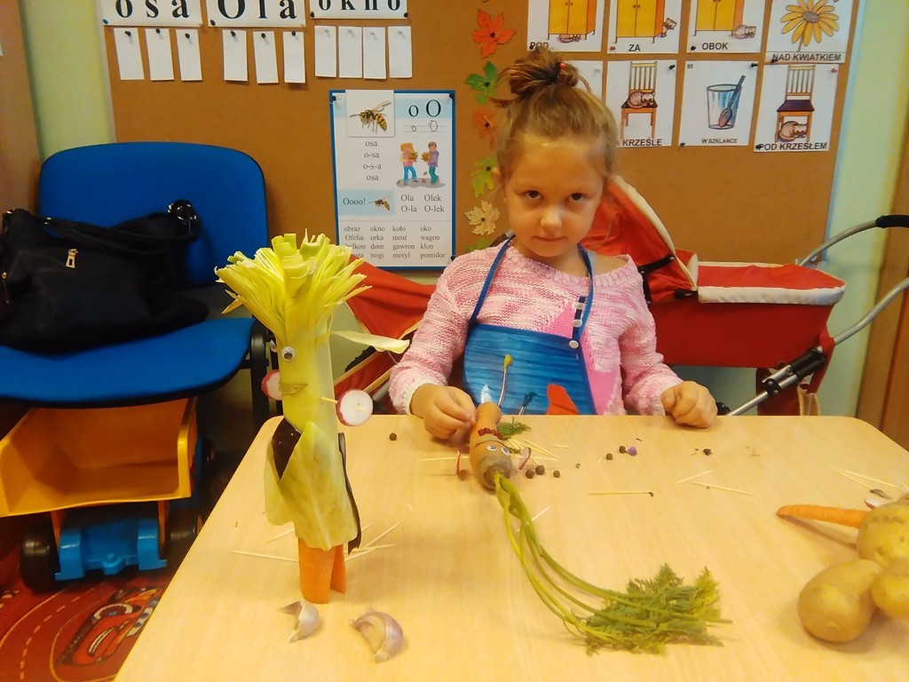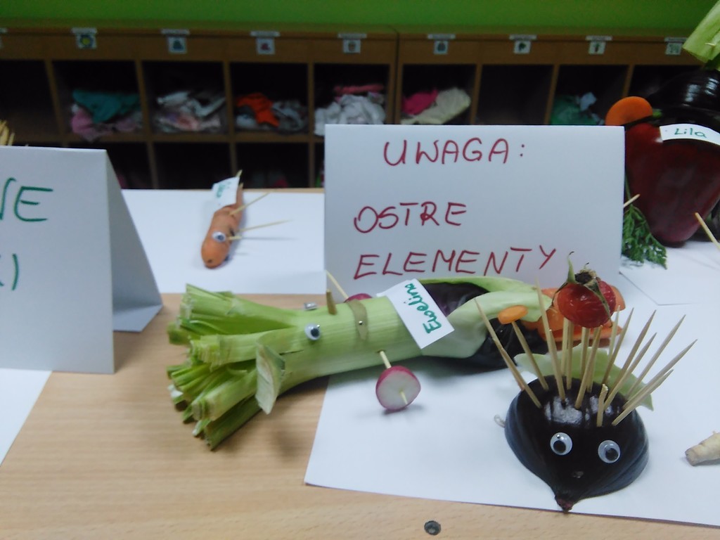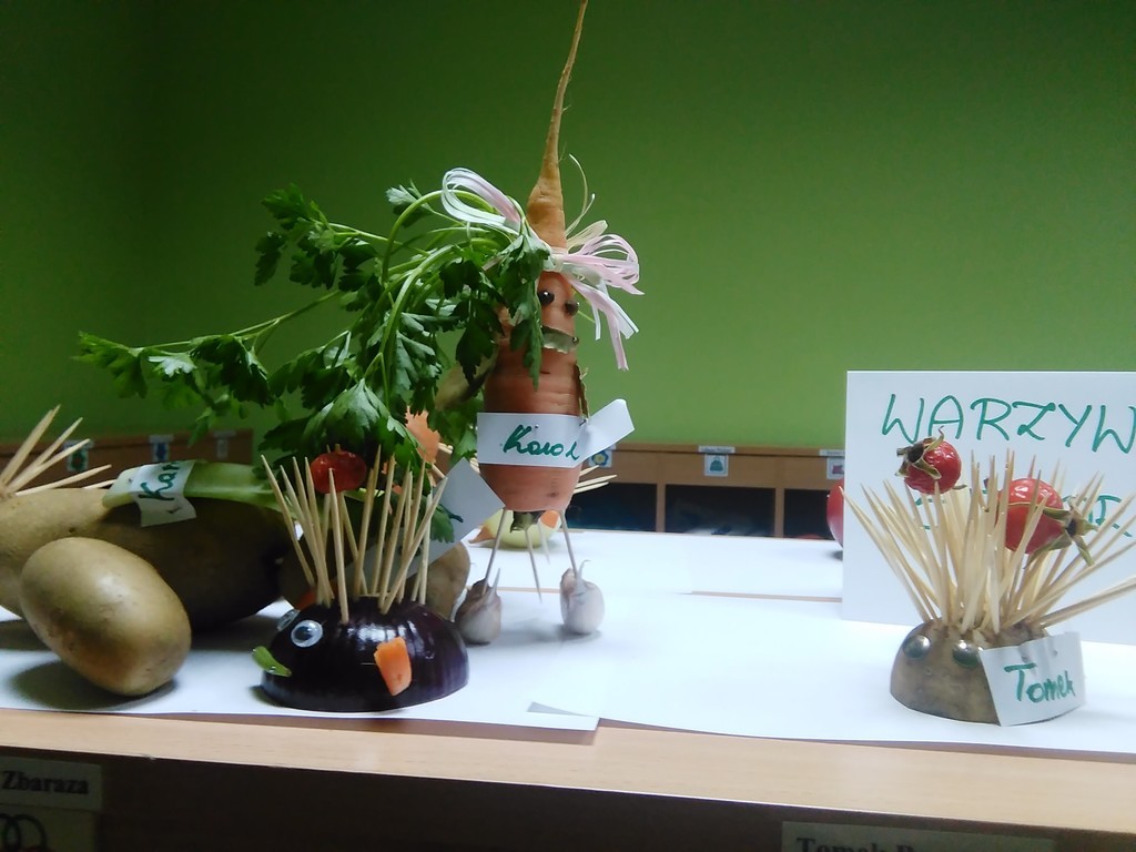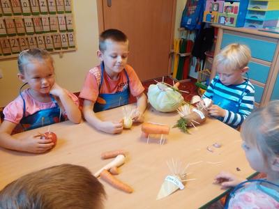 Na dzisiejszy dzień czekaliśmy od poniedziałku. W końcu każdy mógł wykazać się wyobraźnią i kreatywnością. Misiaki wykonały z zebranych w sali warzyw i ziół piękne figurki, każda otrzymała imię. Dzieci mogły korzxystając z okazji utrwalać nazwy poznanych już warzyw. Zapraszamy do galerii.