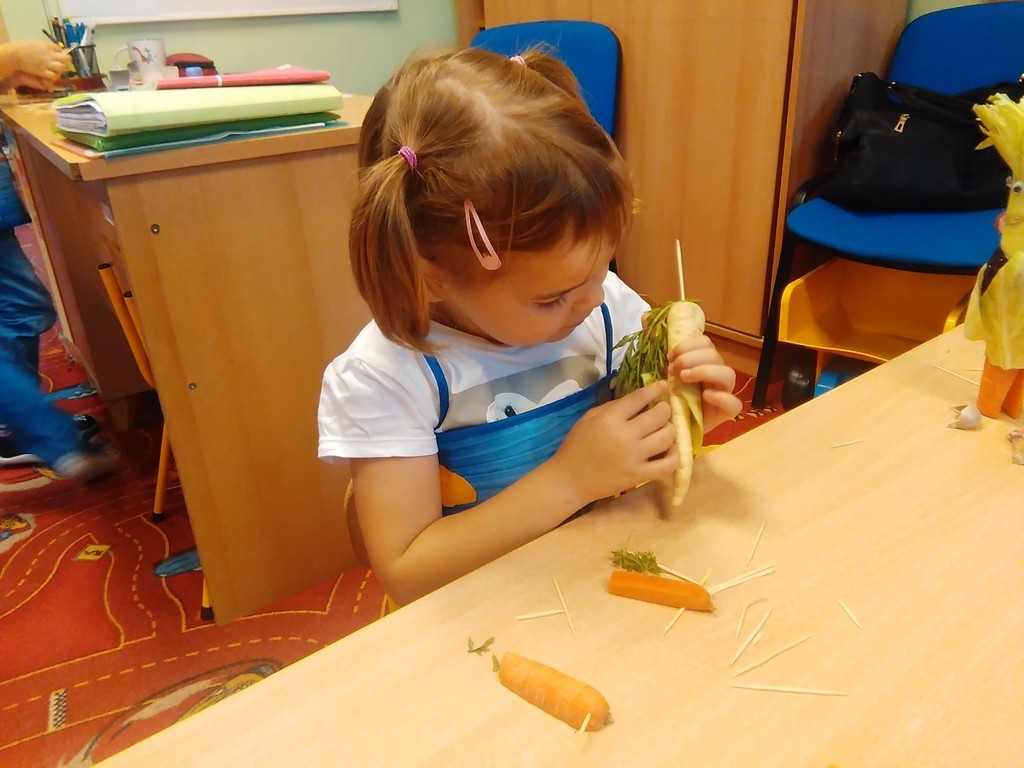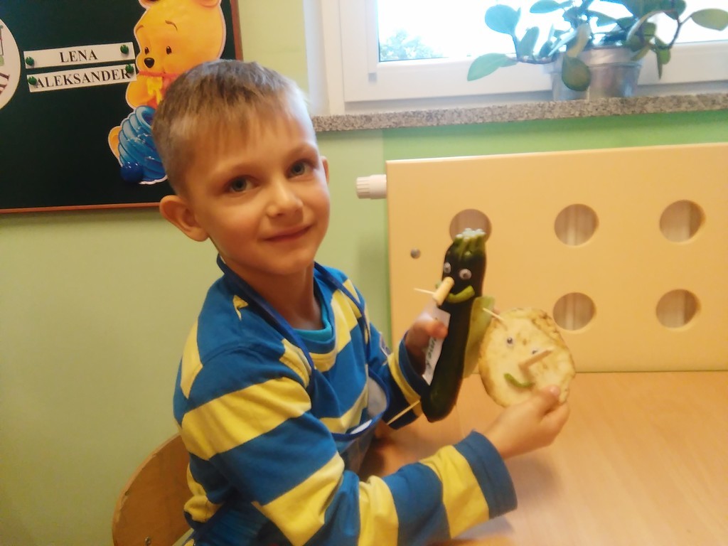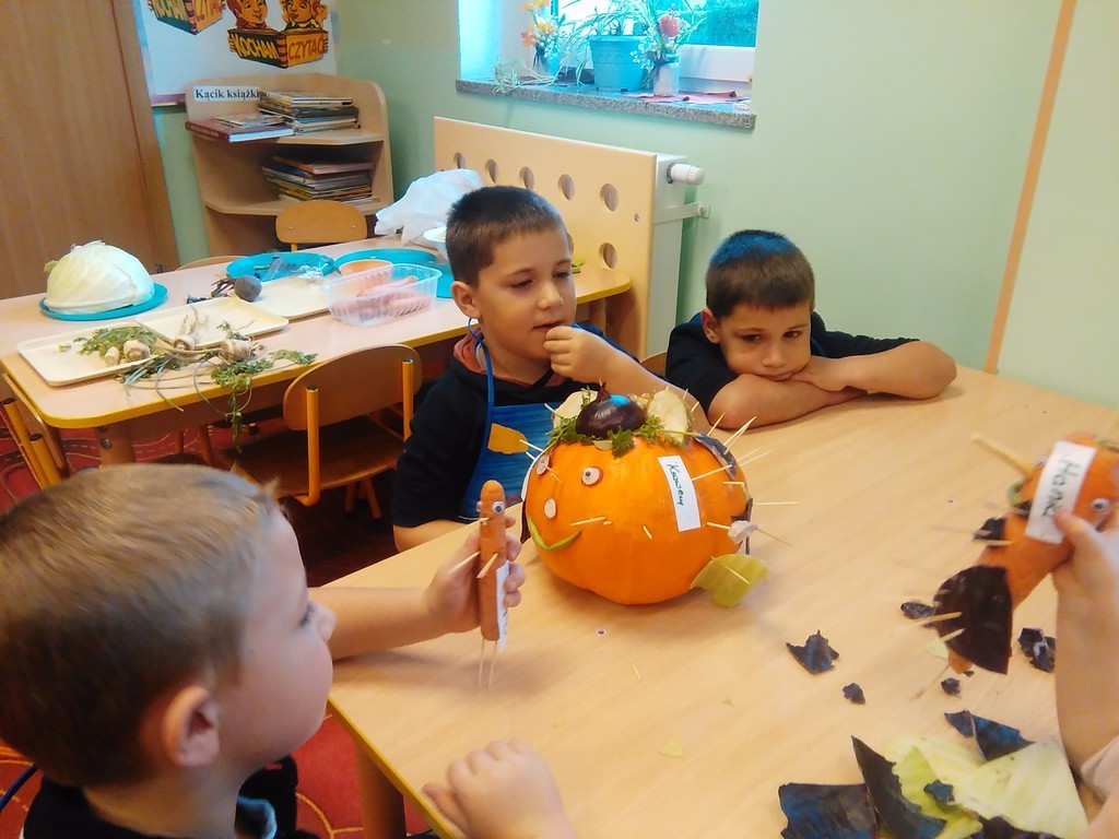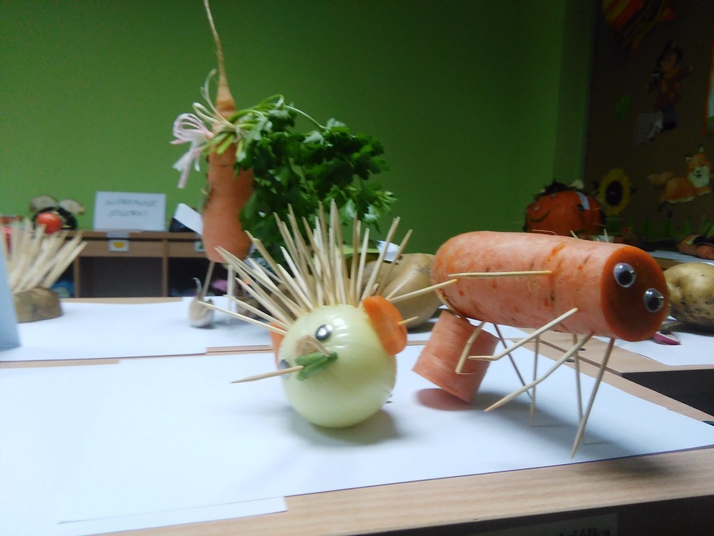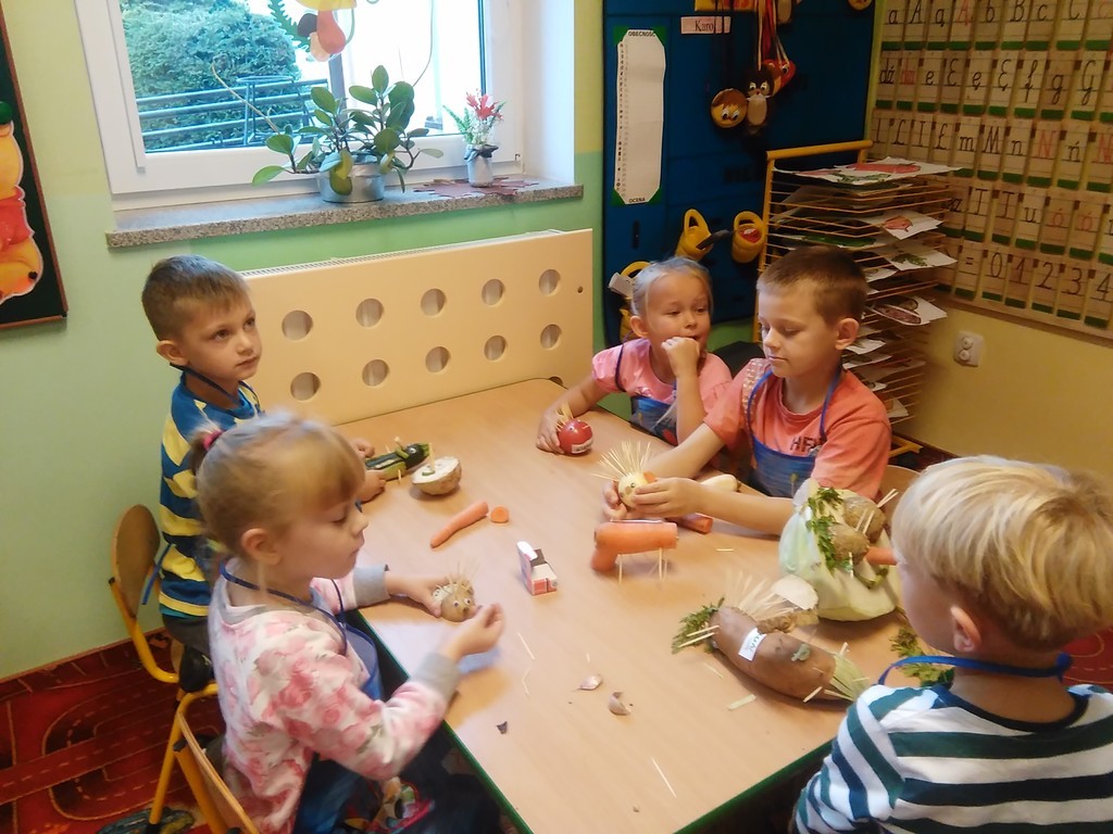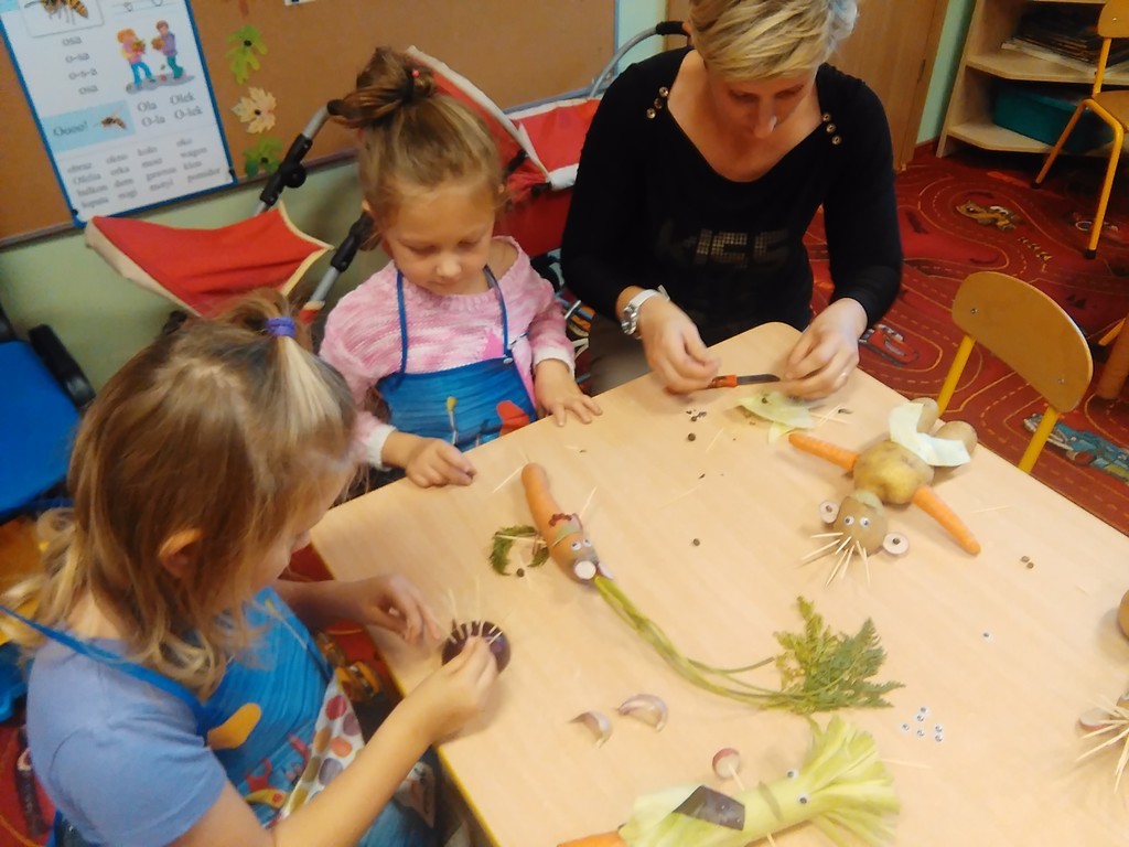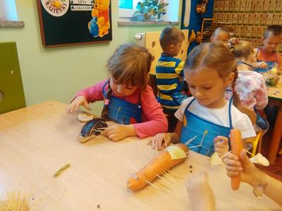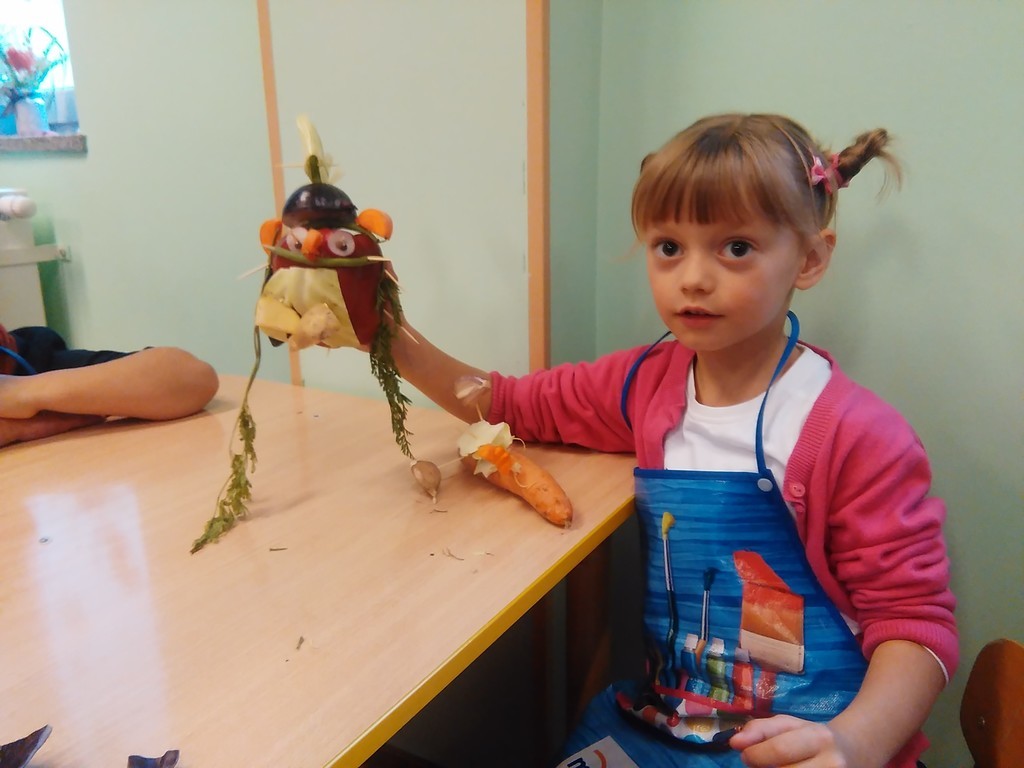 Na dzisiejszy dzień czekaliśmy od poniedziałku. W końcu każdy mógł wykazać się wyobraźnią i kreatywnością. Misiaki wykonały z zebranych w sali warzyw i ziół piękne figurki, każda otrzymała imię. Dzieci mogły korzxystając z okazji utrwalać nazwy poznanych już warzyw. Zapraszamy do galerii.