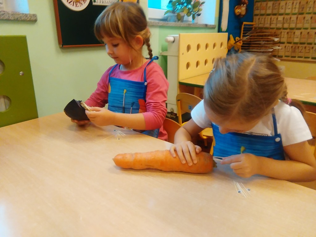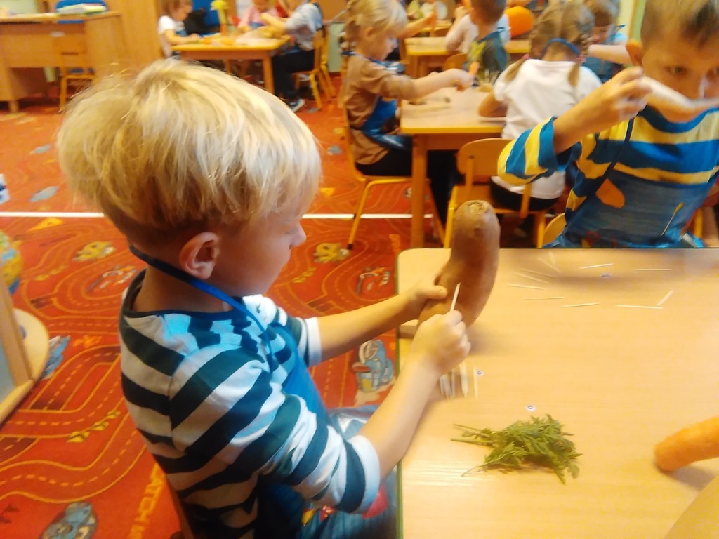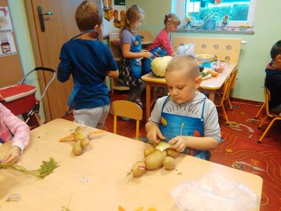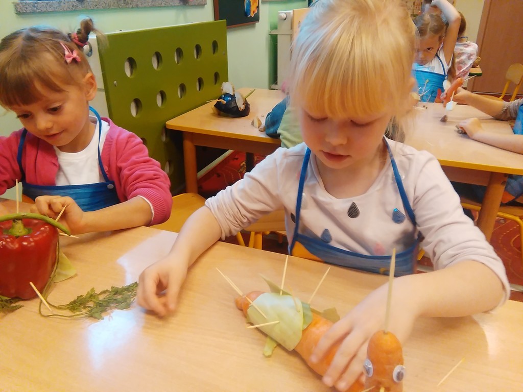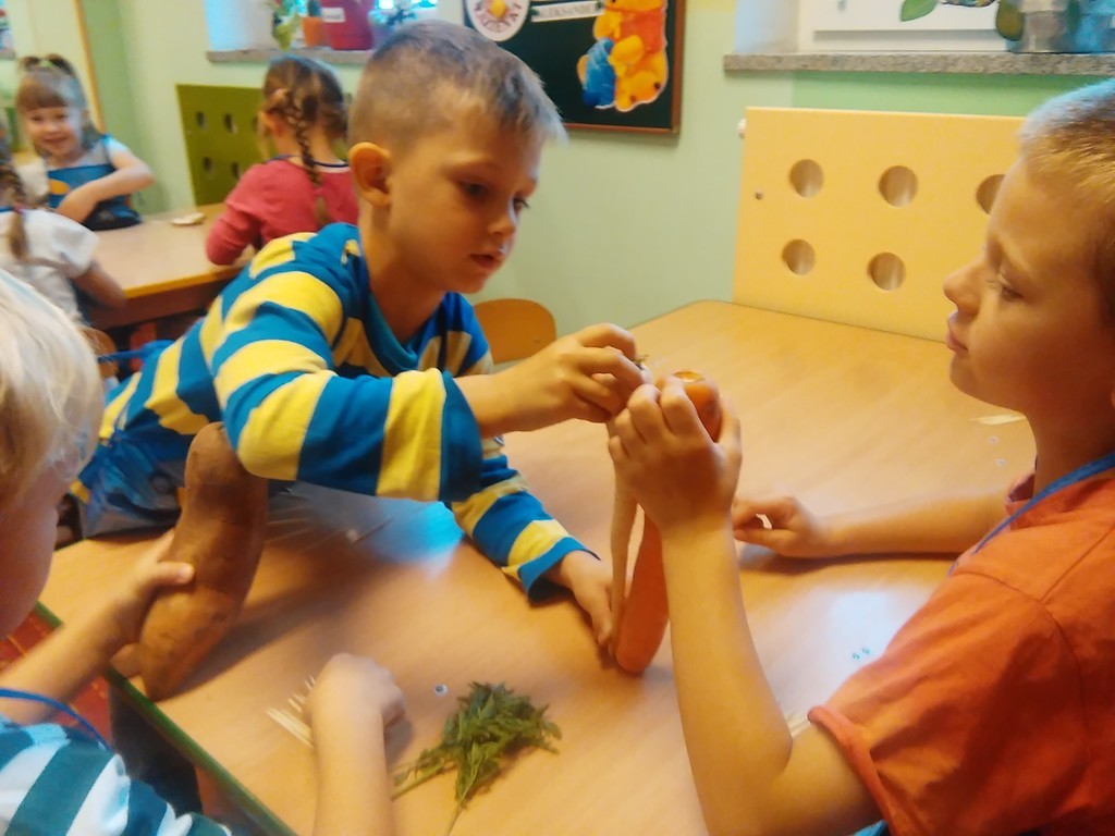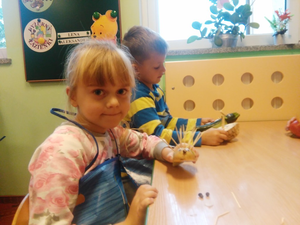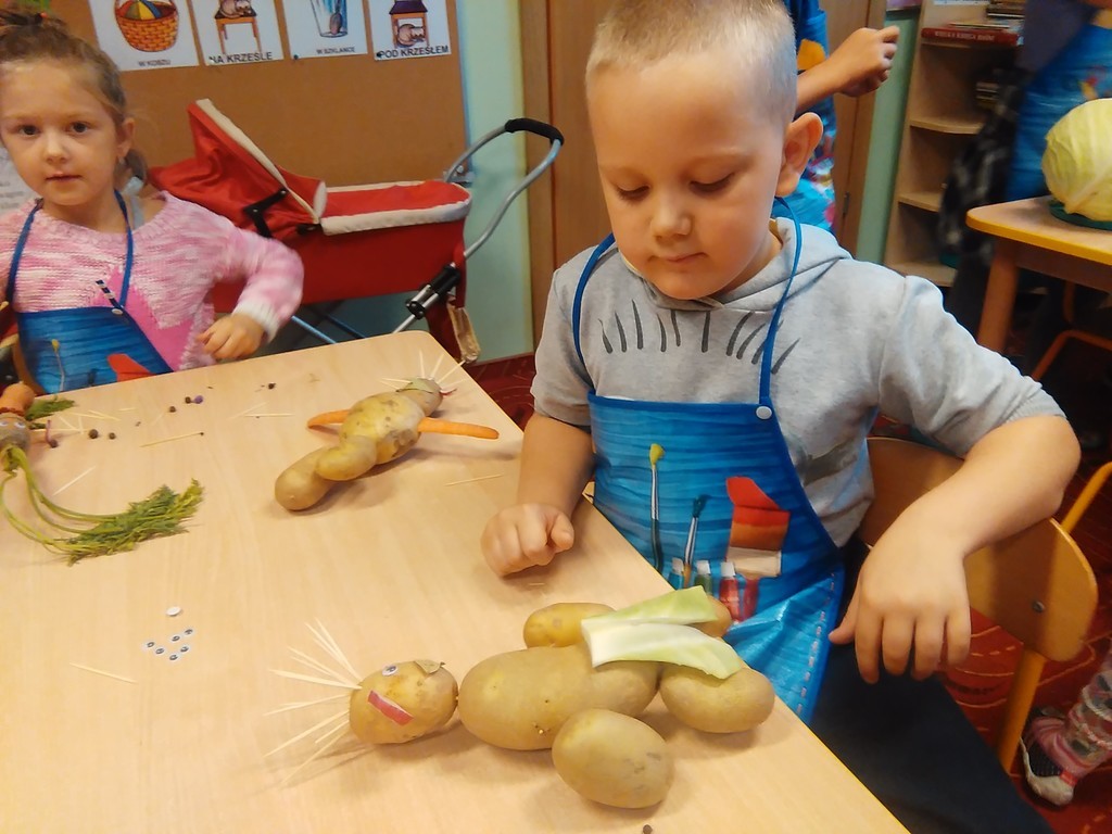 Na dzisiejszy dzień czekaliśmy od poniedziałku. W końcu każdy mógł wykazać się wyobraźnią i kreatywnością. Misiaki wykonały z zebranych w sali warzyw i ziół piękne figurki, każda otrzymała imię. Dzieci mogły korzxystając z okazji utrwalać nazwy poznanych już warzyw. Zapraszamy do galerii.