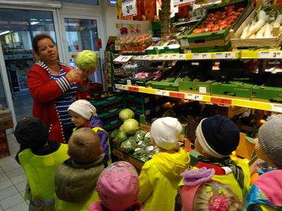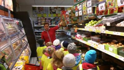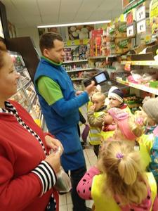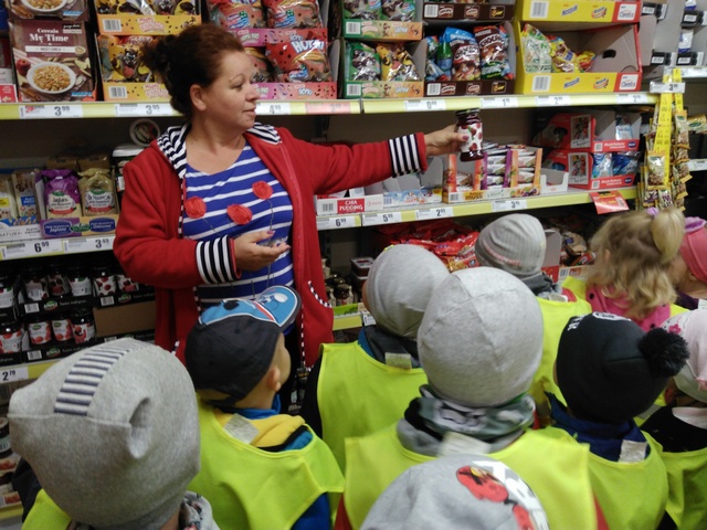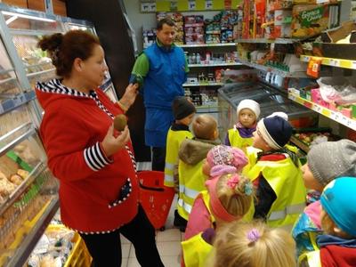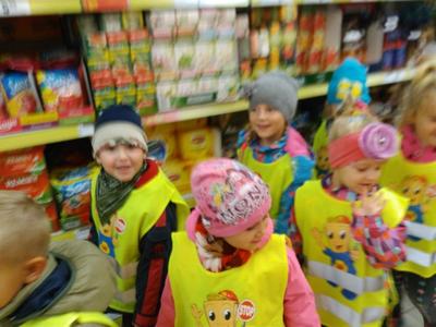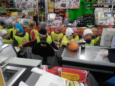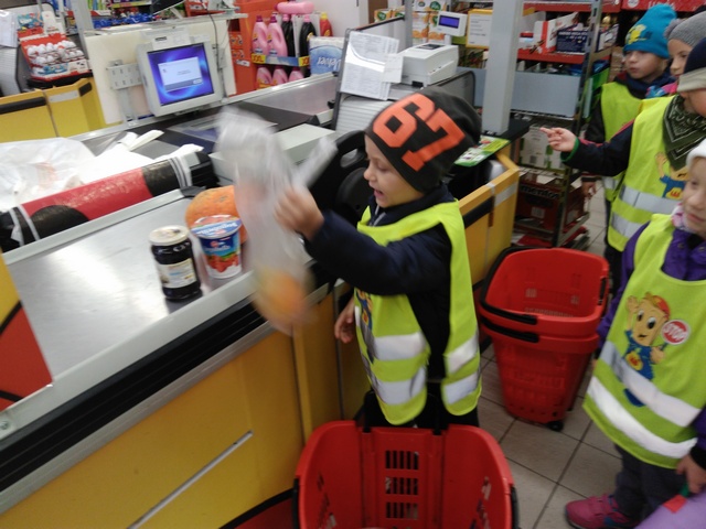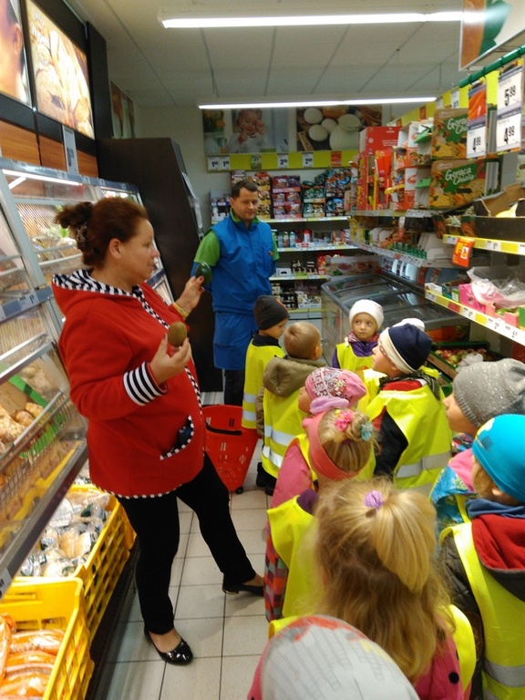 Przez ostatnie dni dzieci z naszej grupy wzbogacały swoją wiedzę na temat owoców i warzyw oraz sposobów ich przetwarzania. Podsumowaniem cyklu zajęć na w/w temat była wycieczka do sklepu o takiej samej nazwie jak nasza grupa. Dzieci żartowały, że ,,małe biedronki” odwiedziły ,,dużą biedronkę”. W sklepie powitał nas kierownik sklepu – tata Wojtka - i z miłym uśmiechem towarzyszył nam w rozpoznawaniu owoców. Pokazał urządzenie, którym posługuje się przy sprawdzaniu towarów znajdujących się w sklepie oraz polecił nam owoce do degustacji. Następnie dzieci zobaczyły produkty wykonane z warzyw i owoców (surówki, jogurty, dżemy, itd.). Przy kasie wyjęły z koszyka wybrane produkty oraz przyglądały się pracy kasjerki. Na koniec zapakowały zakupy, podziękowały i pożegnały się.