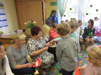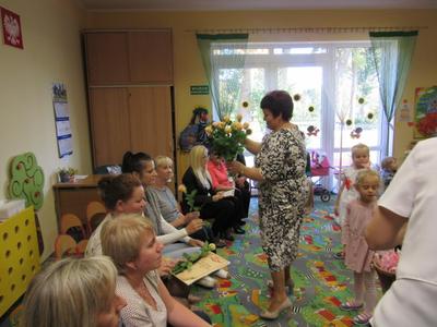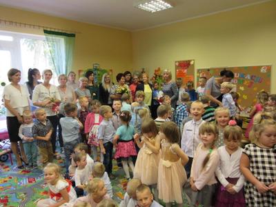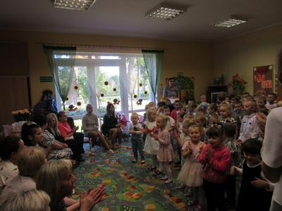 14 października to nie tylko Dzień Nauczyciela, ale to święto wszystkich tych, którzy dbają, aby dzieciom w przedszkolu było miło i bezpiecznie. W tym roku gospodarzami uroczystości były KRASNALE. Wszystkie grupy zaprezentowały swoje umiejętności śpiewając piosenki i recytując wiersze. Były piękne życzenia, upominki i gromkie brawa. Święto uświetnili również: przedstawiciel organu prowadzącego UG- Pani Teresa Oreńczak oraz Rada Rodziców.