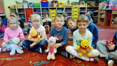 5 listopada przypada Międzynarodowy Dzień Postaci z Bajek. Z tej okazji dzieci przyniosły dzisiaj do przedszkola bajkowe zabawki, które zaprezentowały przed koleżankami i kolegami. Przedszkolaki wzięły udział w wielu konkurencjach sprawdzających ich wiedzę o bajkach, baśniach i legendach. Wszyscy dobrze się bawili podkreślając, że nie liczy się zwycięstwo lecz dobra zabawa i sportowe zachowanie! Brawo przedszkolaki