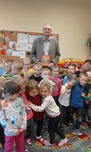 Spotkanie z bliskimi na terenie przedszkola jest elementem integracji obu środowisk i dużym przeżyciem dla dzieci. W tym tygodniu do naszego Klubu Czytających Rodzin (do grupy młodszej - "Krasnali") wstąpił tatuś Jasia B. Pan Zbigniew B. i przeczytał dzieciom bajkę Carlo Collodiego Pinokio. 24 listopada przypada rocznica urodzin tego prozaika, publicysty i autora powieści. Tata Jasia B. spisał się na medal. Pięknie przeczytał bajkę, a dzieciom bardzo się podobało. Dziękujemy bardzo.