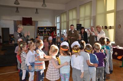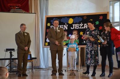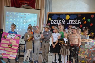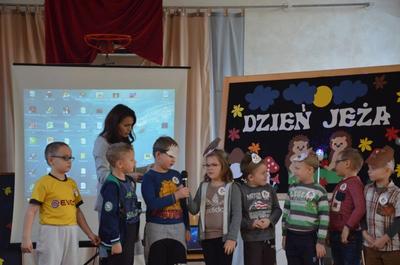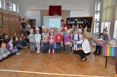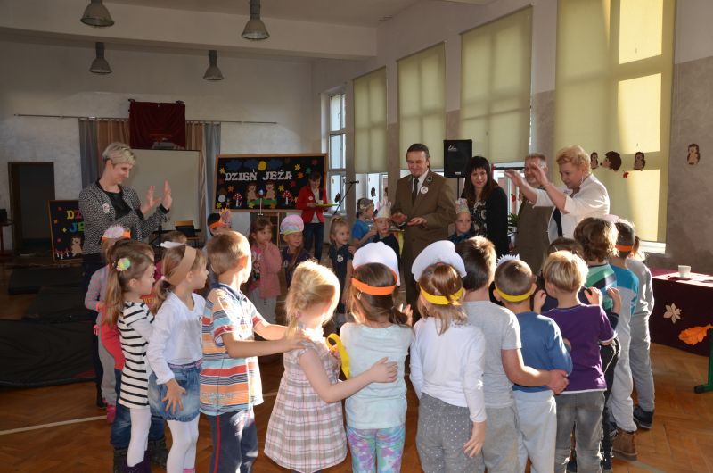 Starszaki Misiaki miały przyjemność uczestniczyć dziś w Szkolnym Dniu Jeża. Podczas imprezy każda grupa i klasa występowały z własnym repertuarem i ciekawostkami na temat życia jeży. Został również rozstrzygnięty Konkurs plastyczny "Jeż sympatyczny zwierz", w którym nasze przedszkolaki wzięły udział. Gośćmi honorowymi byli Panowie Leśniczy. Opowiedzieli oni dzieciom przedziwne historie związane z małym kłującym zwierzątkiem. Odbyła się także transmisja rozmowy z Panem Jerzym od jeży z Płocka - emerytowanym nauczycielem, który założył schronisko i klinikę dla jeżyków. Dziękujemy organizatorom za wspaniałą zabawę!