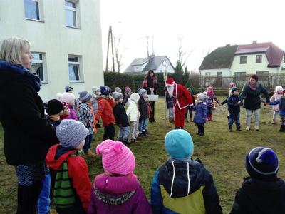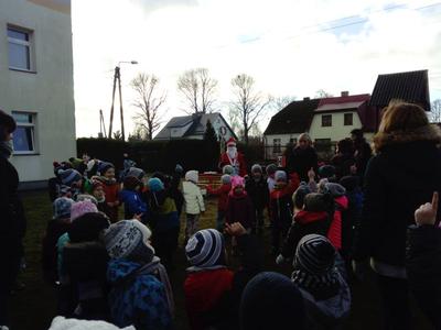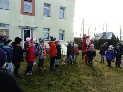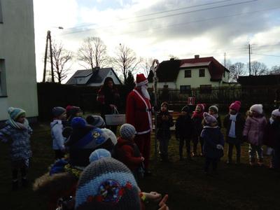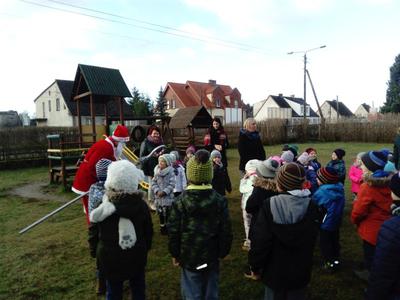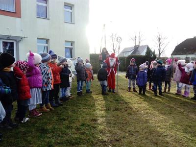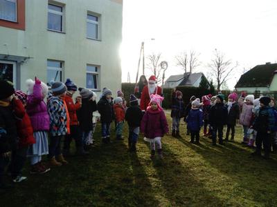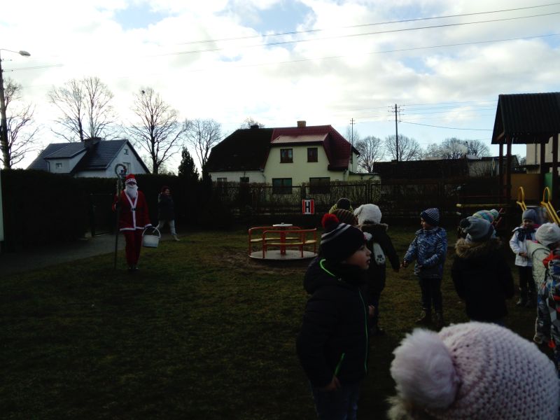 Dziś odwiedził nas Święty Mikołaj! Dzieci czekały niecierpliwie i szukały czerwonej postaci za każdym krzaczkiem i w każdym oknie. Przez chwilę nawet wydawało nam się, że widzimy sanie sunące nad kominem... W końcu oczekiwany gość nadszedł i poświęcił przedszkolakom chwilę swego cennego czasu. Dzieci wspólnie pobawiły się i odśpiewały piosenkę Mikołajowi. Niektórzy po krótkiej rozmowie okazali poprawę Po powrocie do sal okazało się, że czekała tam na dzieci słodka niespodzianka. Dziękujemy Mikołaju!