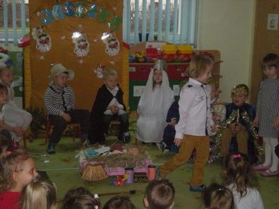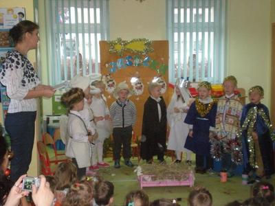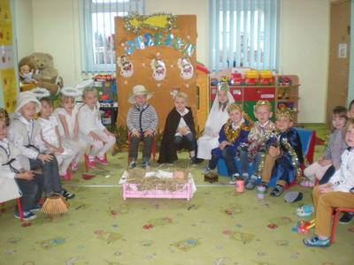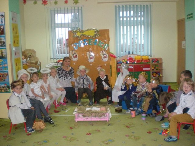 Boże Narodzenie to najpiękniejsze święta - najbardziej wyczekiwane przez dzieci i dorosłych. Myślimy o nich już dużo wcześniej. Jest to czas wyjątkowy i magiczny spędzany w gronie rodzinnym. Każda rodzina ma swoją historię, którą samo napisało życie. Fragment historii rodziny z Nazaretu przedstawiły dzieci z grupy ,,Biedronki" podczas ,,Jasełek", które odbyły się w piątek 16 grudnia. Była pięknie wystrojona choinka, kolorowe lampki i wspólne śpiewanie kolęd. Pani Dyrektor naszego Przedszkola złożyła wszystkim dzieciom, rodzicom oraz pracownikom świąteczne życzenia. Całemu spotkaniu towarzyszyła miła i radosna atmosfera. Życzymy wszystkim radosnych, spokojnych świąt i wszystkiego dobrego w nadchodzącym Nowym Roku.
