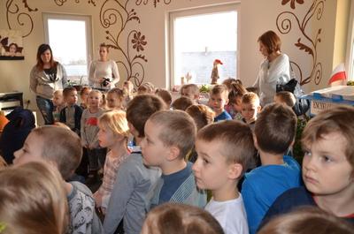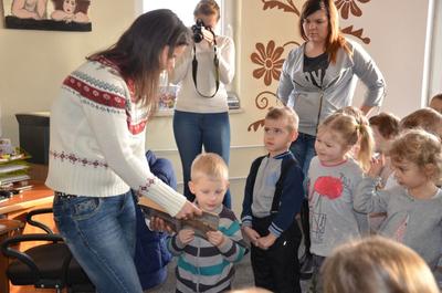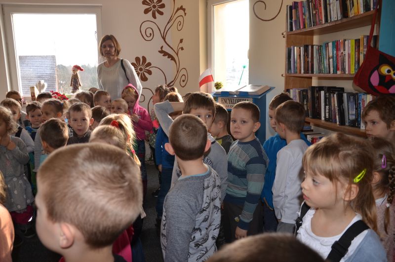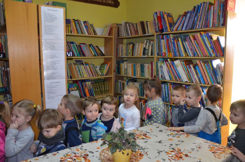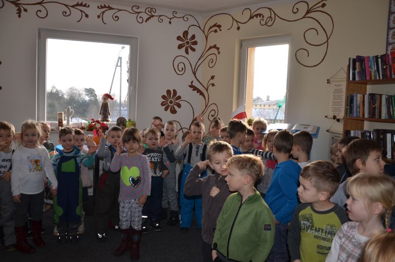 8 lutego 2017 roku przedszkolaki odwiedziły Gminną Bibliotekę Publiczną w Kołczygłowach. Dla wielu z nich była to pierwsza wizyta w domu, gdzie „mieszka książka”. Tematem spotkania było zapoznanie z biblioteką. Przedszkolaki zwiedziły placówkę, dowiedziały się, co należy zrobić, aby stać się czytelnikiem biblioteki oraz jak należy się w niej zachowywać. Dzieci miały możliwość przejść między regałami w wypożyczalni i czytelni dla dorosłych. Wszystkim bardzo spodobały się kolorowe i bogato ilustrowane książki. Przedszkolaki żegnając się obiecały, że przyjdą ponownie, tym razem z rodzicami, by zapisać się i wypożyczyć książki.