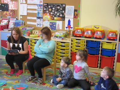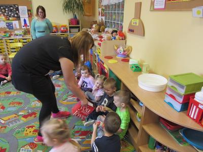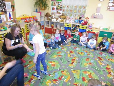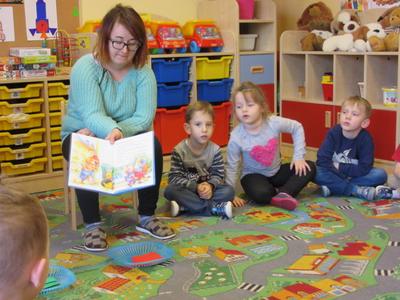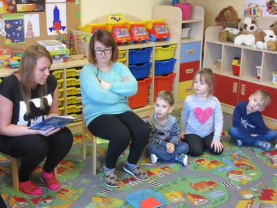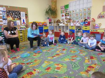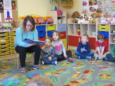 11 lutego swoje urodziny obchodziła wspaniała pisarka Dorota Gellner. Jest autorką słuchowisk radiowych, bajek muzycznych, scenariuszy dla TVP, napisała ponad sto książek i prawie dwieście tekstów piosenek dla dzieci. Właśnie z tej okazji dzieci z najmłodszej grupy gościły dwie mamy: mamę Mrysi- p. Magdalenę K. oraz mamę Magdy- p. Roksanę Ch. W czasie spotkania dzieci poznały przepiękne bajeczki z książki pt. "Bajeczki z miasteczka", odpowiadały na wylosowane pytania dotyczące bajek, a na zakończenie spotkania bawiły się wspólnie z gośćmi przy piosenkach, do których tekst napisała p. Dorota Gellner: " Piosenka o jamniczku", " Spacer po dywanie". Mama Marysi podarowała przedszkolakom pyszne lizaki z sokiem owocowym. Dziękujemy mamom za udział w spotkaniu z cyklu Klub Czytających Rodzin.