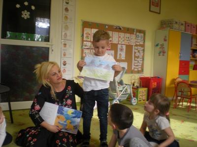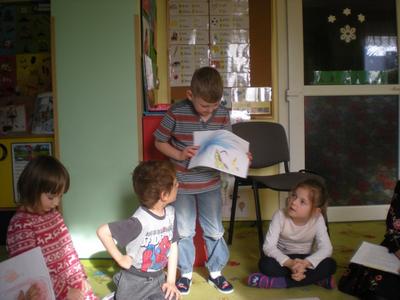 W piątek (24.02.2017r.) dzieci z grupy ,,Biedronki” gościły w swojej sali mamę Filipa - p. Martę H. Zaproszony gość przeczytał bajkę ,,Wielki sekret Simby” (Bajki na dobranoc). Dzieci zaśpiewały piosenkę pt. ,,Bajkowe marzenia” oraz przepięknie zarecytowały wiersz pt. ,,Moje bajki”. Z wielkim zainteresowaniem i uwagą wysłuchały bajki, doskonale odpowiadały na zadawane pytania dotyczące przeczytanego utworu. Po wysłuchaniu bajki wykonały ilustrację nucąc sobie piosenkę ,,Hakuna Matata”. Dziękujemy za poświęcony czas i zapraszamy innych rodziców do wspólnego czytania.